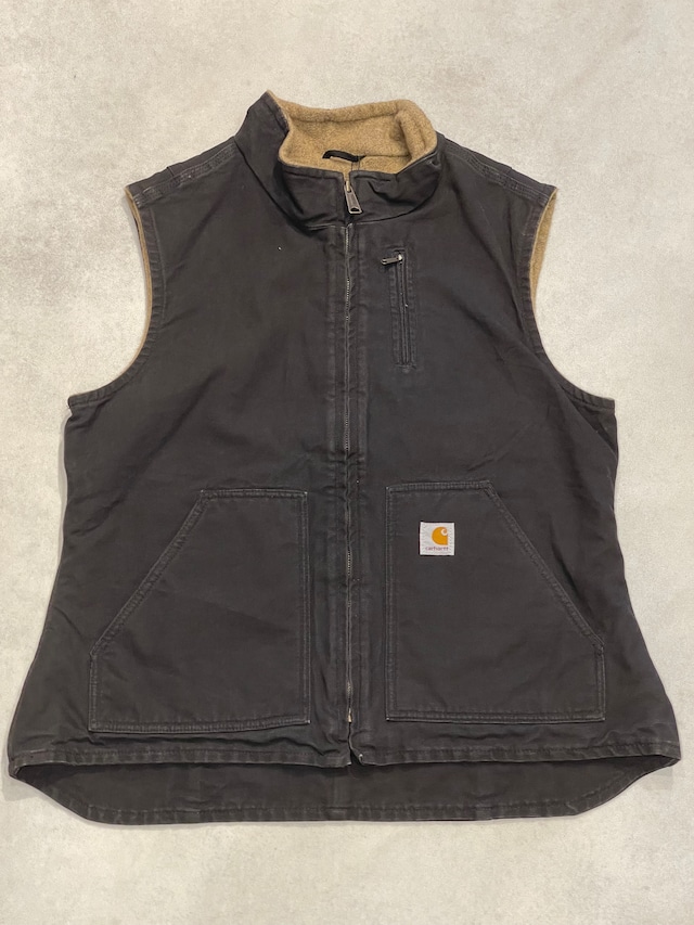 【Carhartt duck vest 】カーハート ダック地ベスト 裏ボア フルジップ ブラウン レディースMサイズ