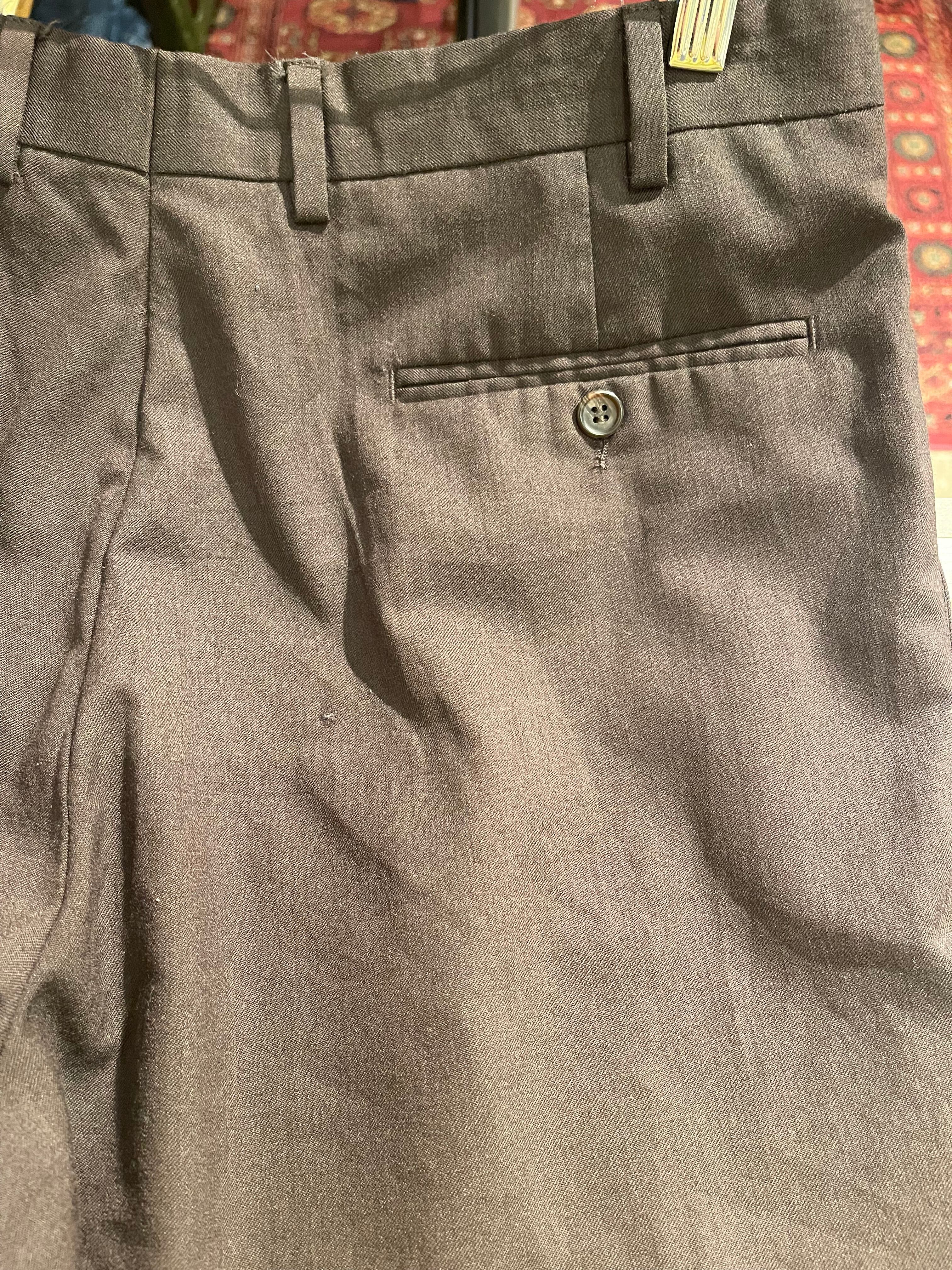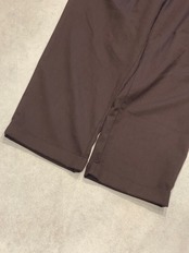 落ち着いたダークブラウンの色合いが落ち着いた大人の色気を醸し出すような雰囲気。2タックのわたりがゆったりで綺麗でドレッシーなワイドスラックス。勝負パンツとしての一張羅になる存在感のあるスラックスです。