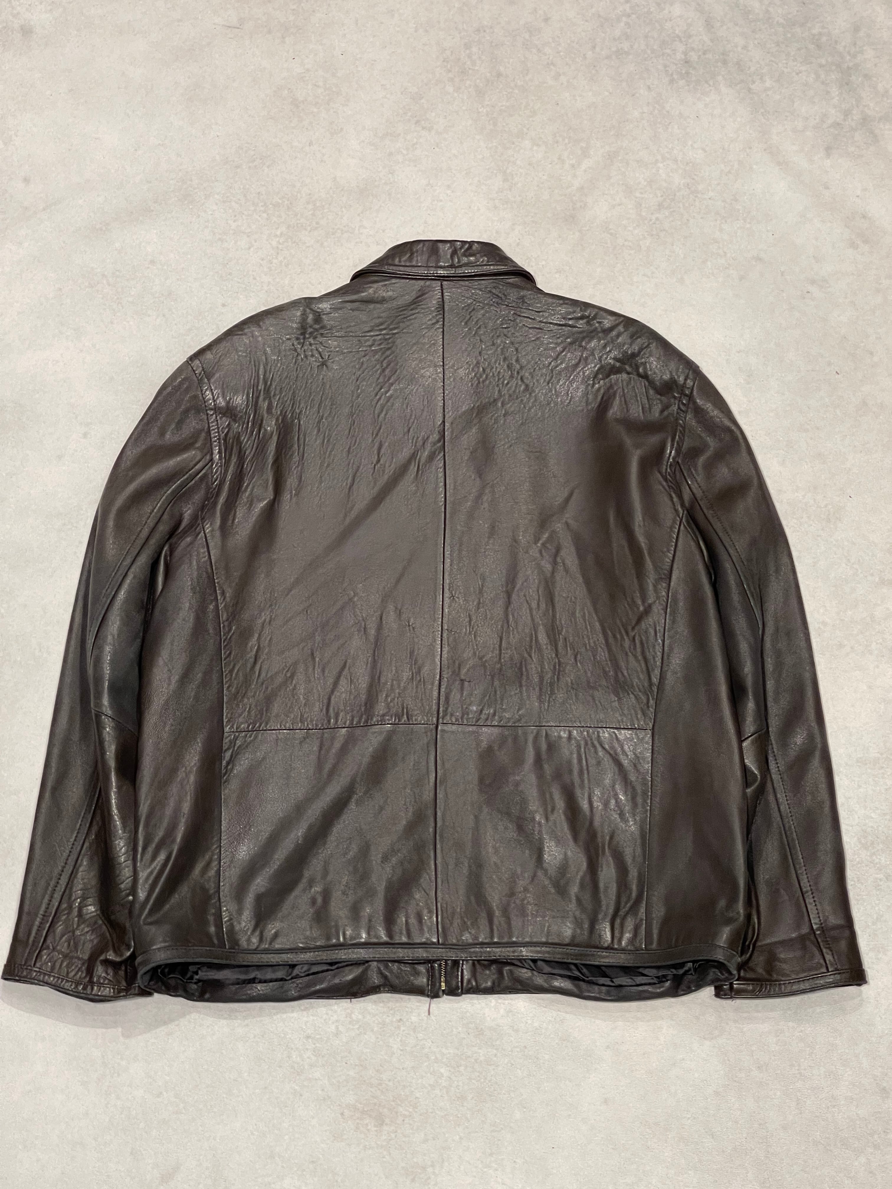 【 Genuine Leather Jacket 】本革 レザージャケット 焦げ茶色 Lサイズ