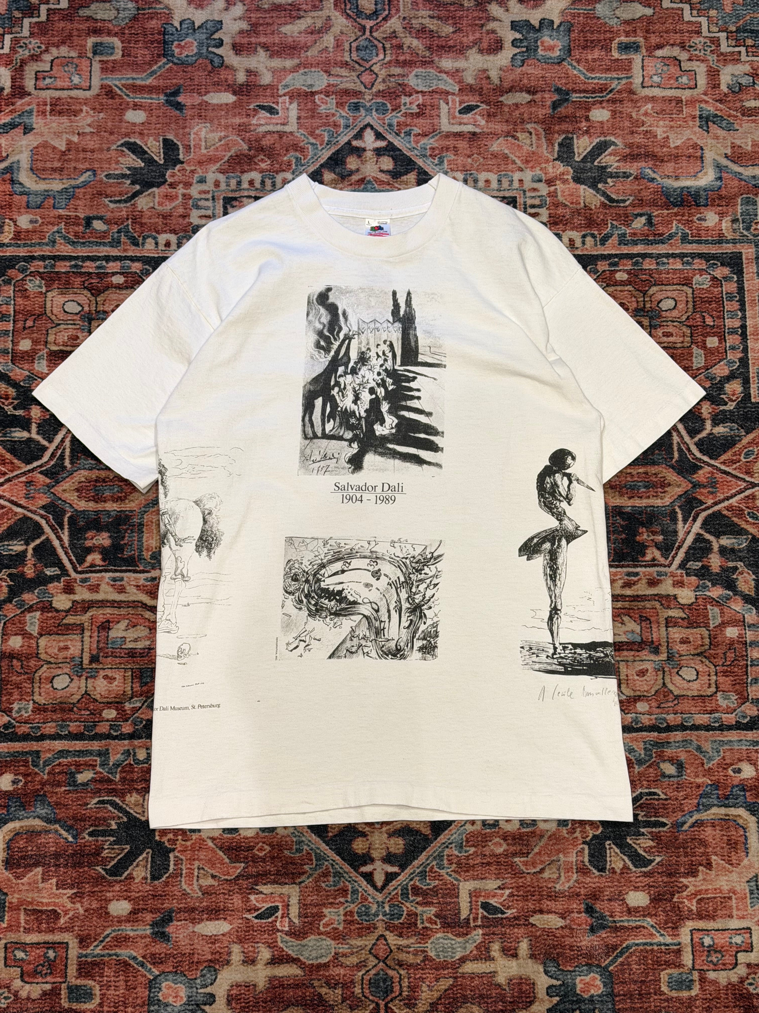 【 Salvador Dari / 90's USA製 FRUIT OF THE LOOM 】 サルバドール・ダリ 90年代 アメリカ製 フルーツオブザルーム シングルステッチ 半袖Tシャツ 白 ホワイト 《 L 》