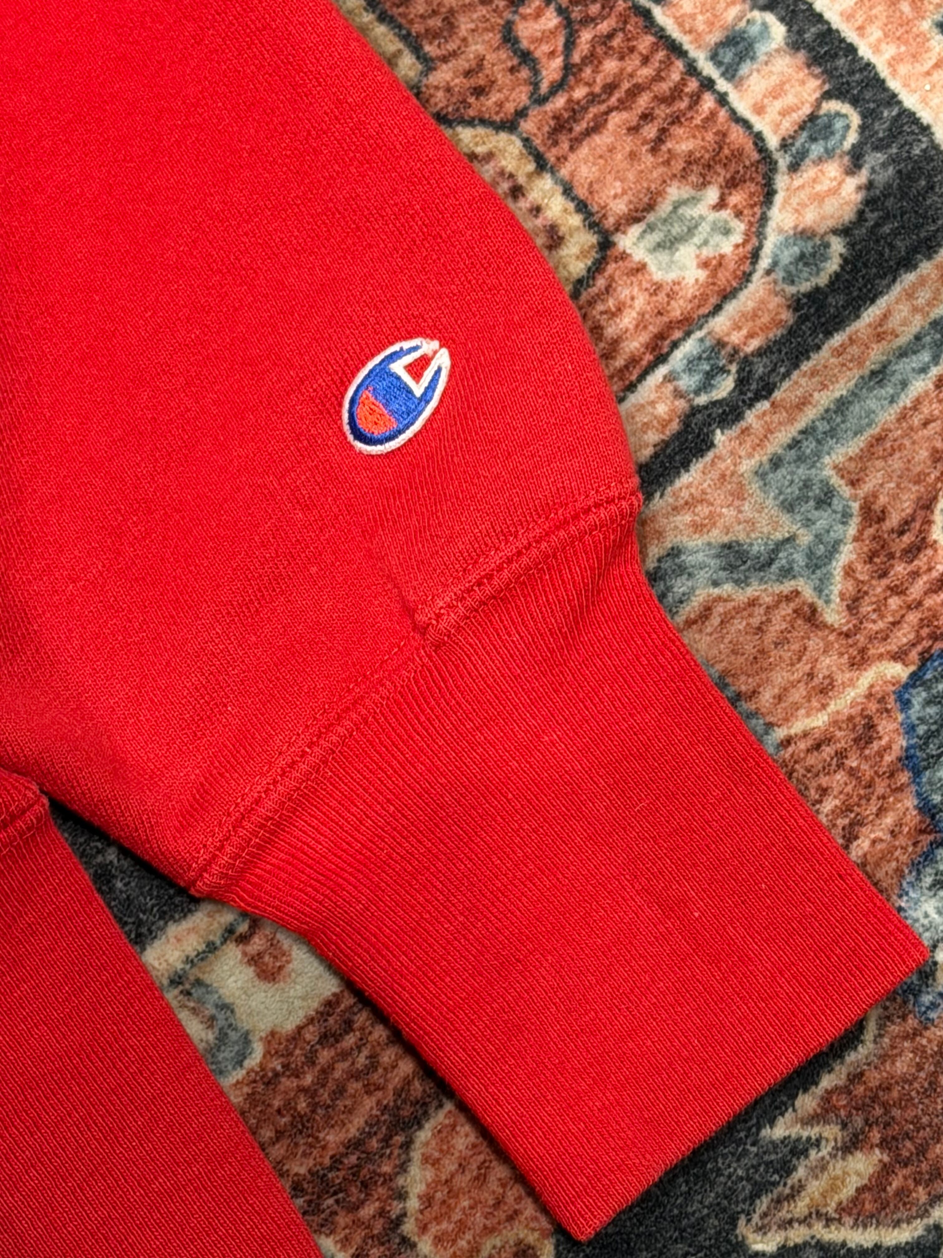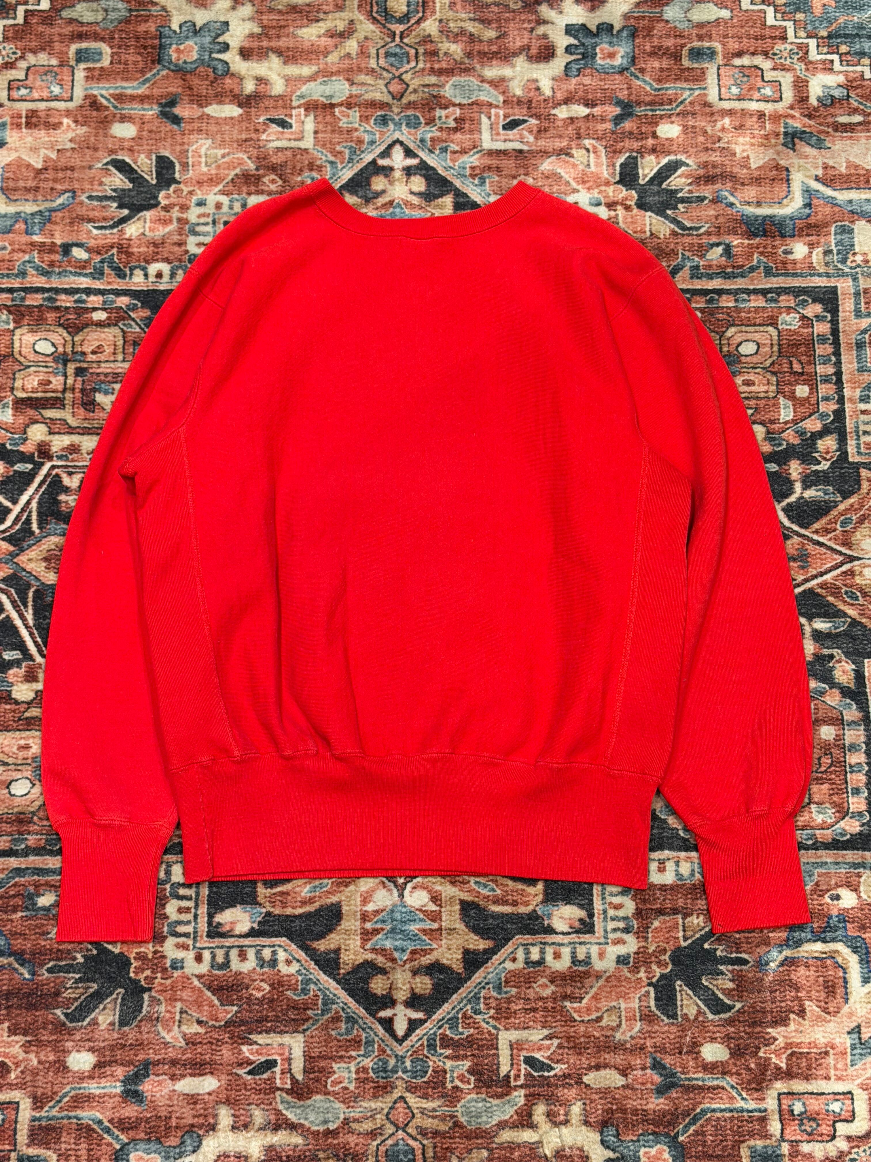 【 90's USA製 / Champion REVERSE WEAVE / DEAD STOCK 】 90年代 チャンピオン リバースウィーブ デッドストック カレッジスウェット 3段プリント 赤 レッド 《 L 》