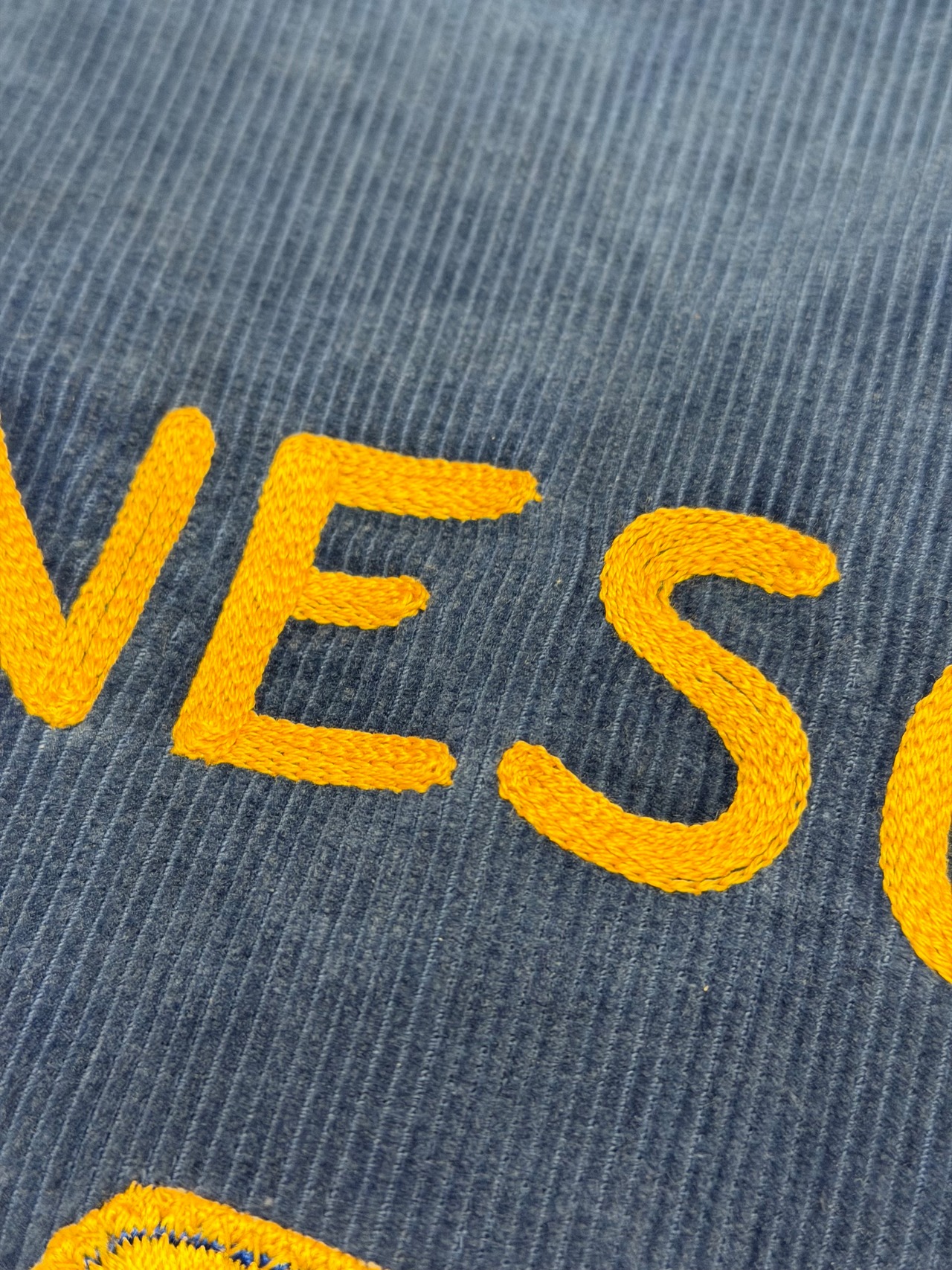 FFAならではのフェードした茄子紺ボディーと黄色チェーンステッチやパッチは