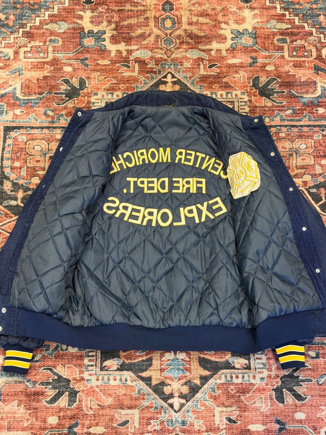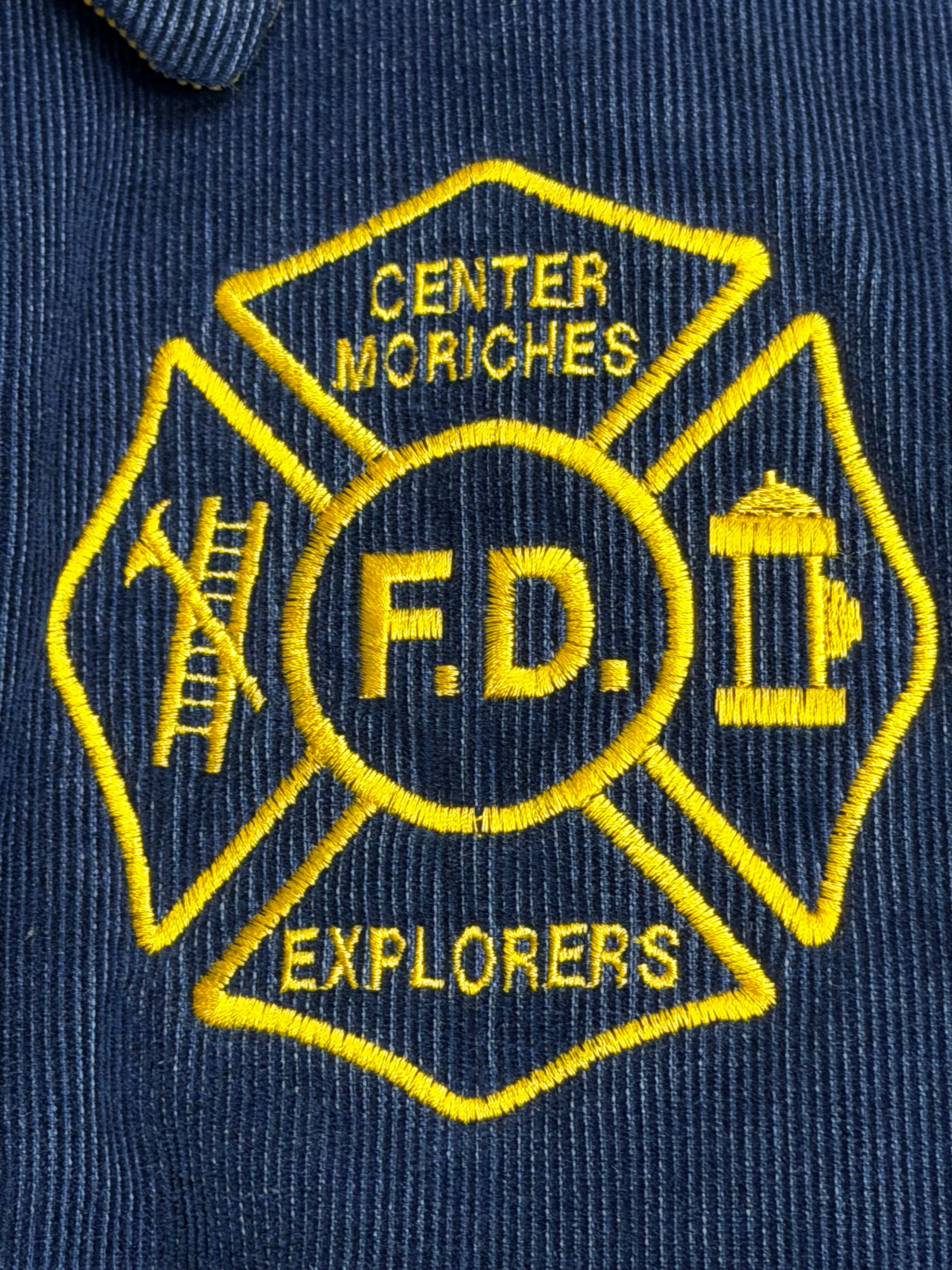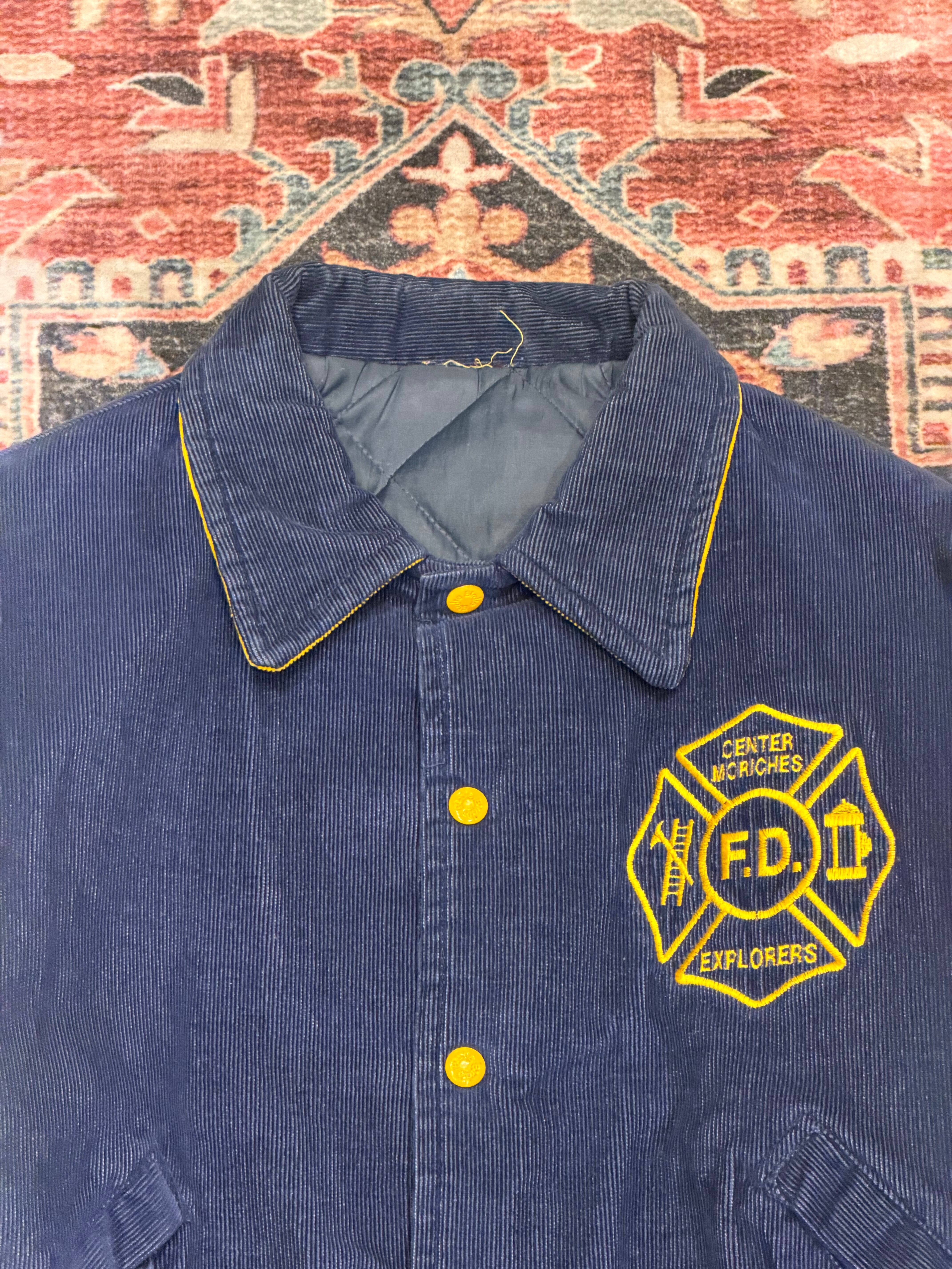 【 Center Moriches Fire Department Explorers Jacket 】 80年代 80s 80's センター・モリッチズ消防署 エクスプローラーズ 消防ジュニア隊 コーデュロイジャケット ネイビー 美品 《 L 》