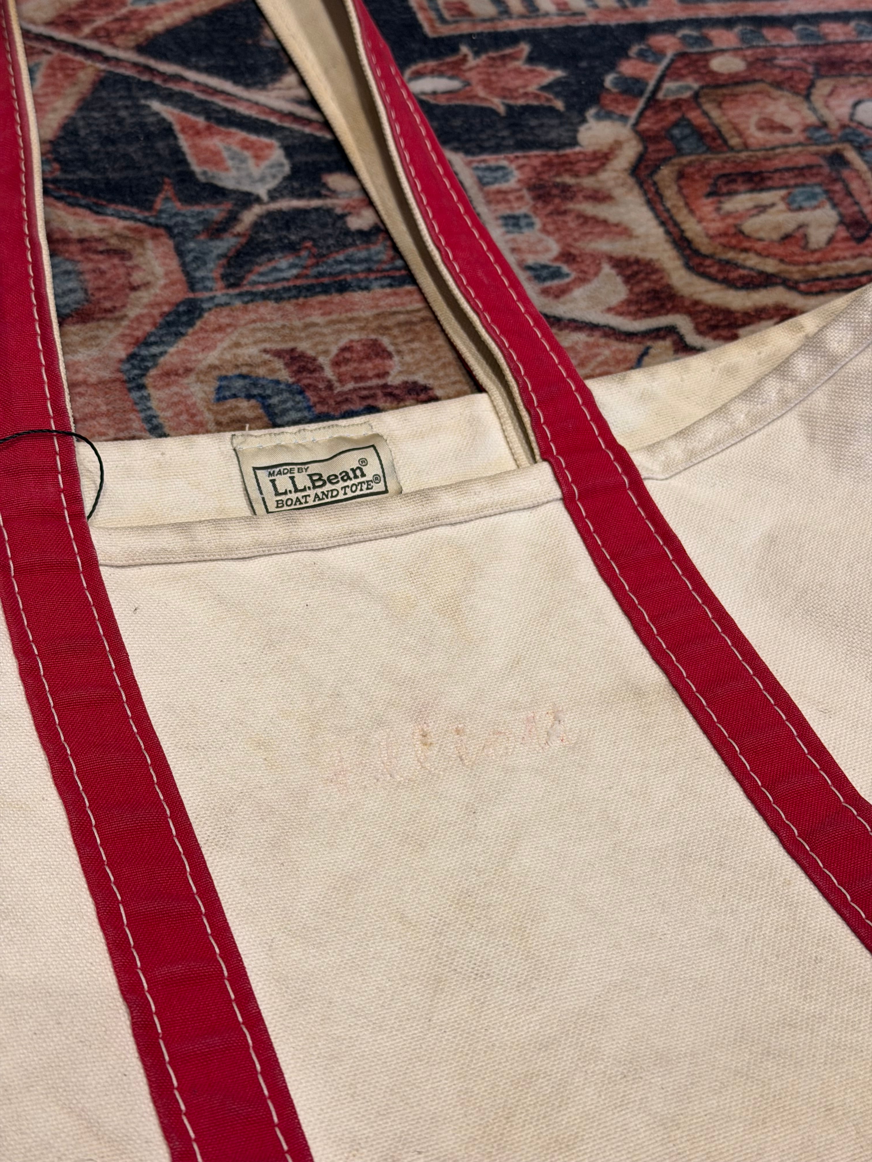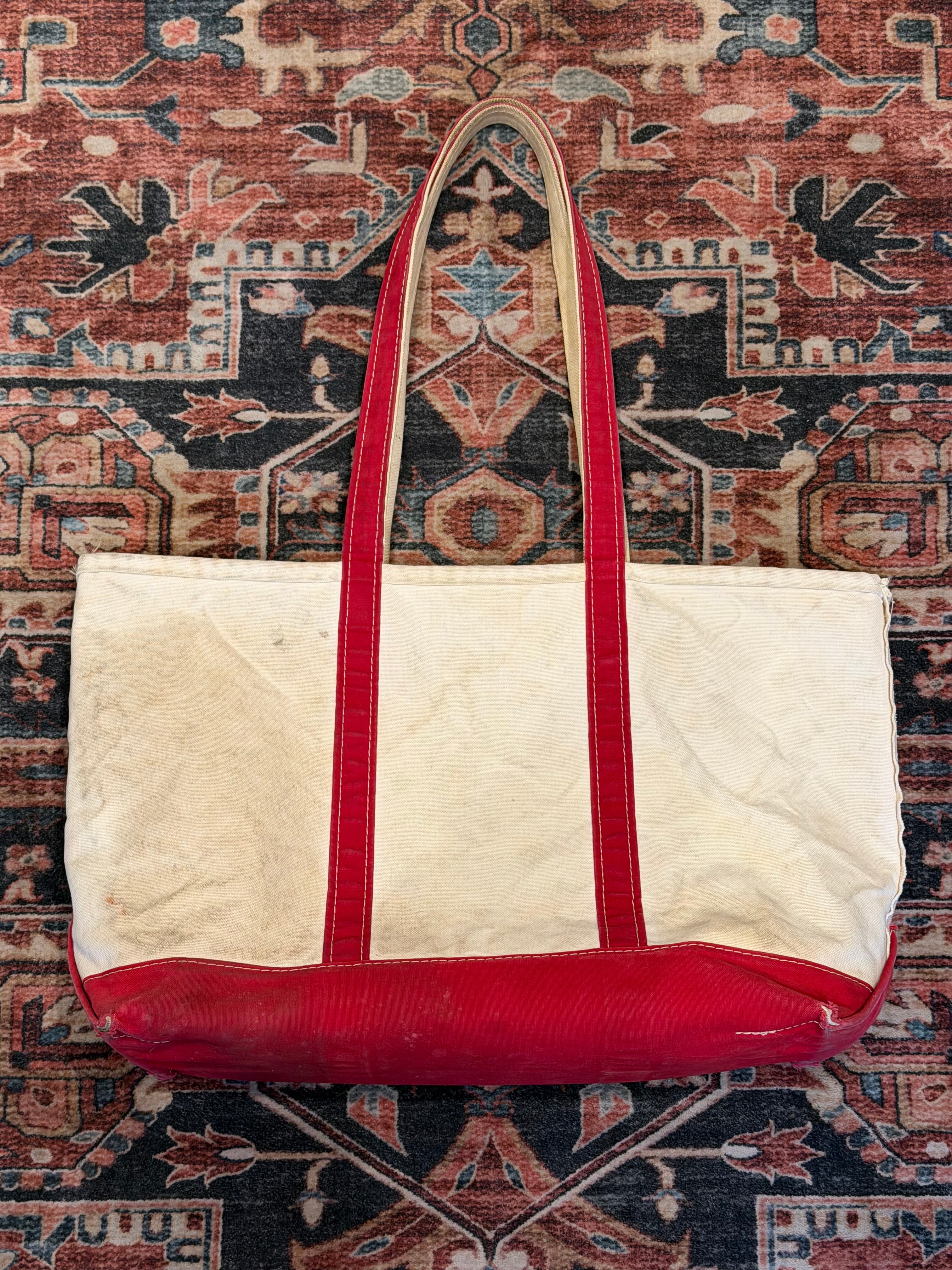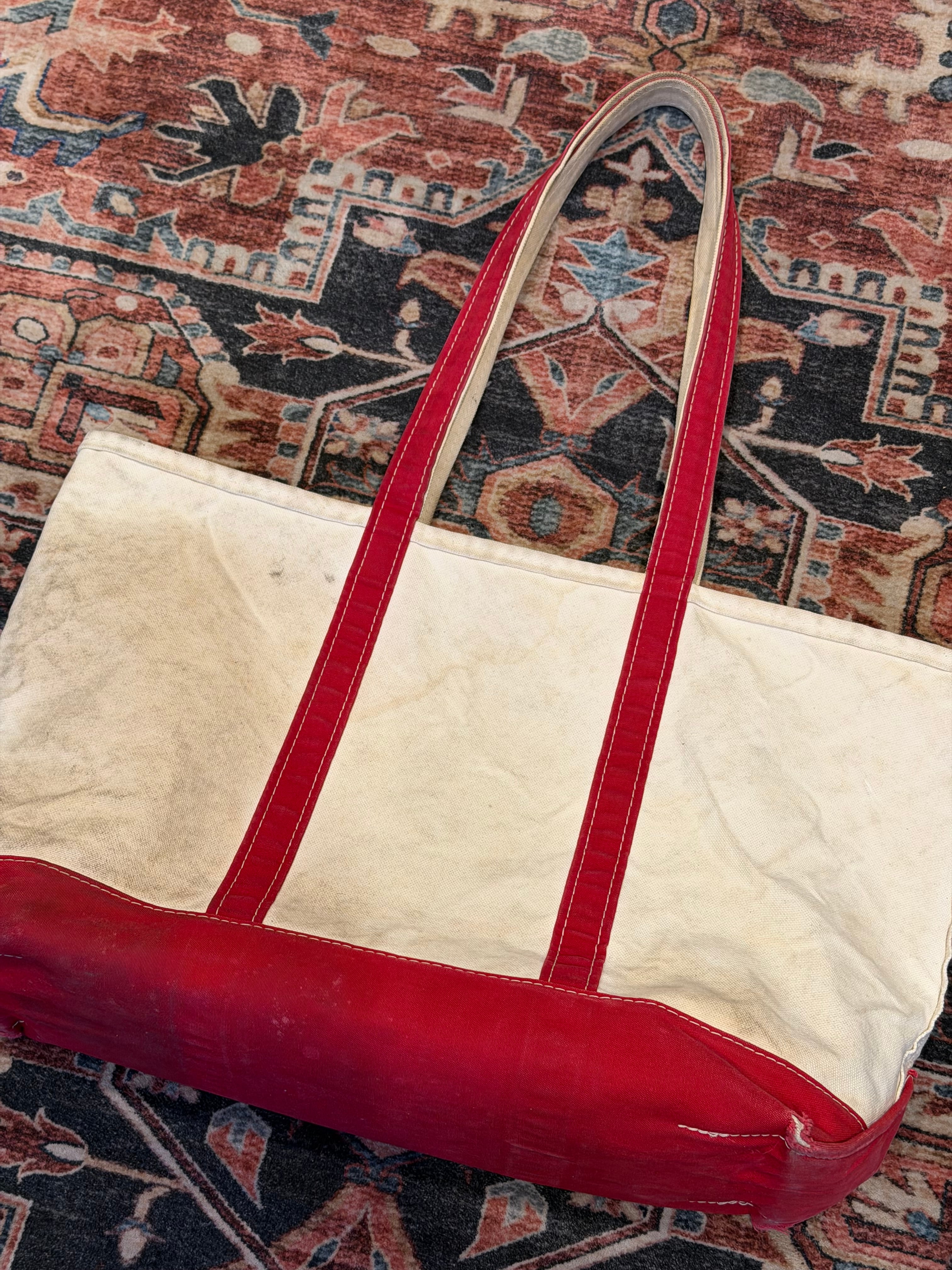 【 90’s~ / L.L.Bean ビーントート 】エルエルビーン トートバック レッド×生成 ロングハンドル フェード