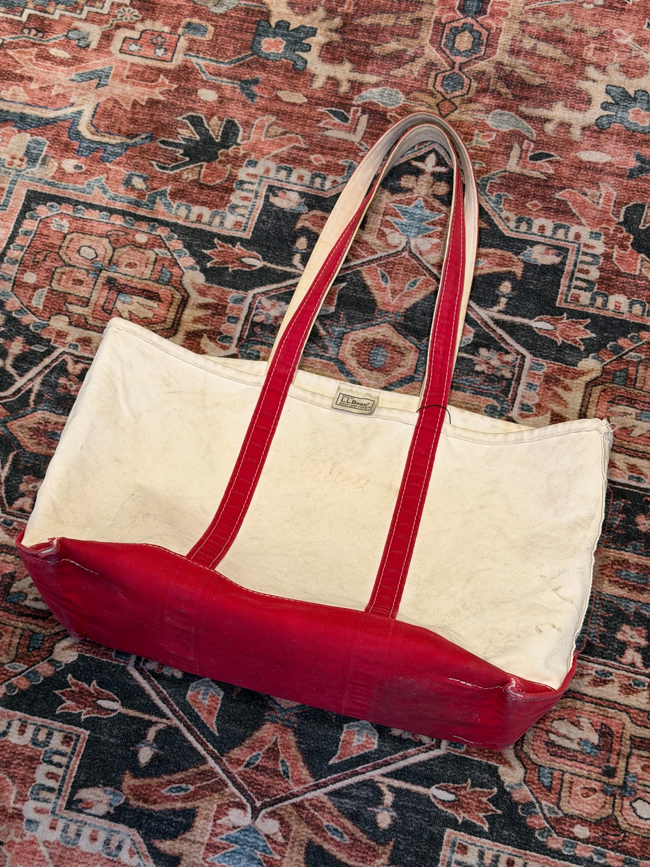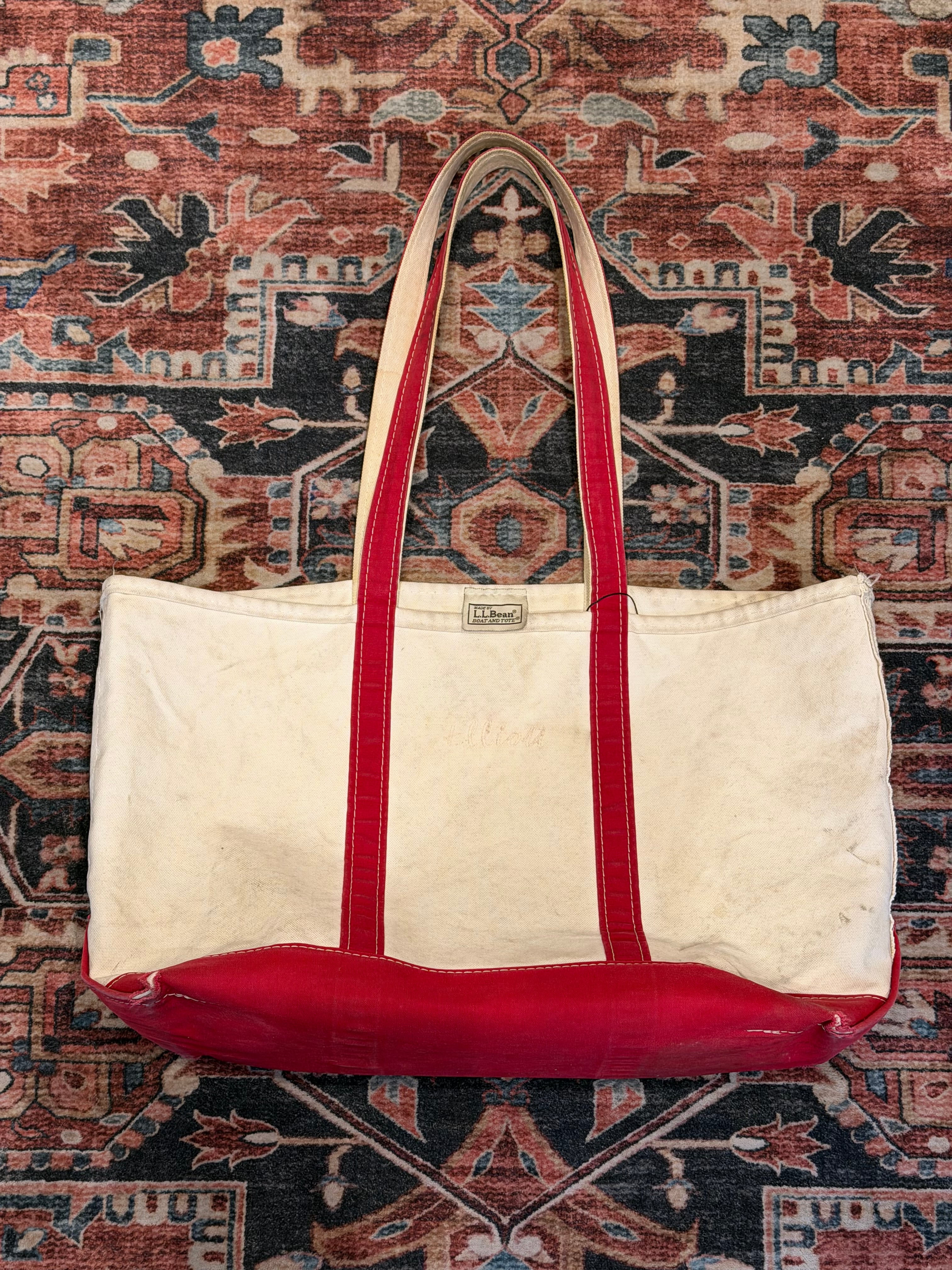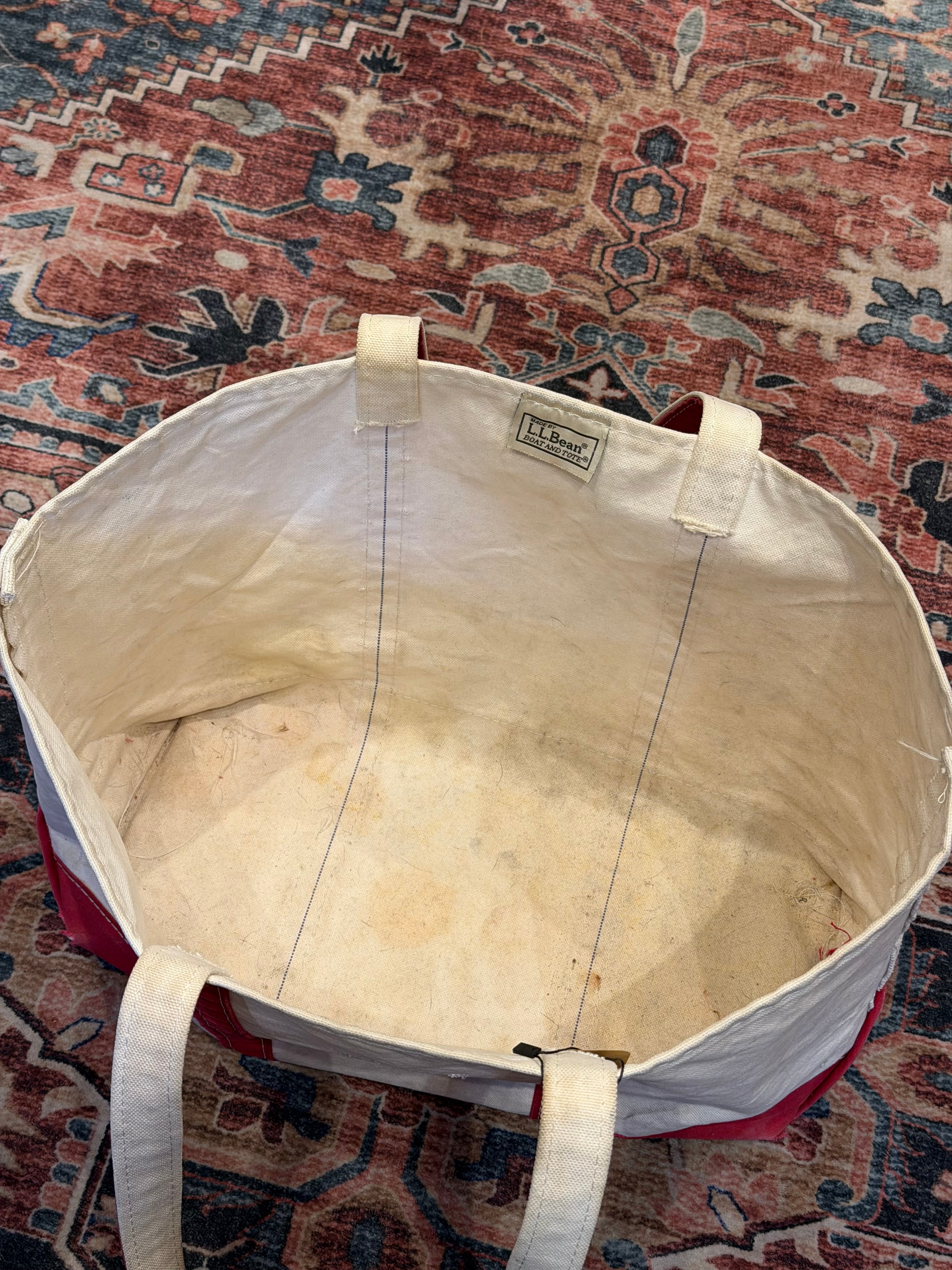 【 90’s~ / L.L.Bean ビーントート 】エルエルビーン トートバック レッド×生成 ロングハンドル フェード