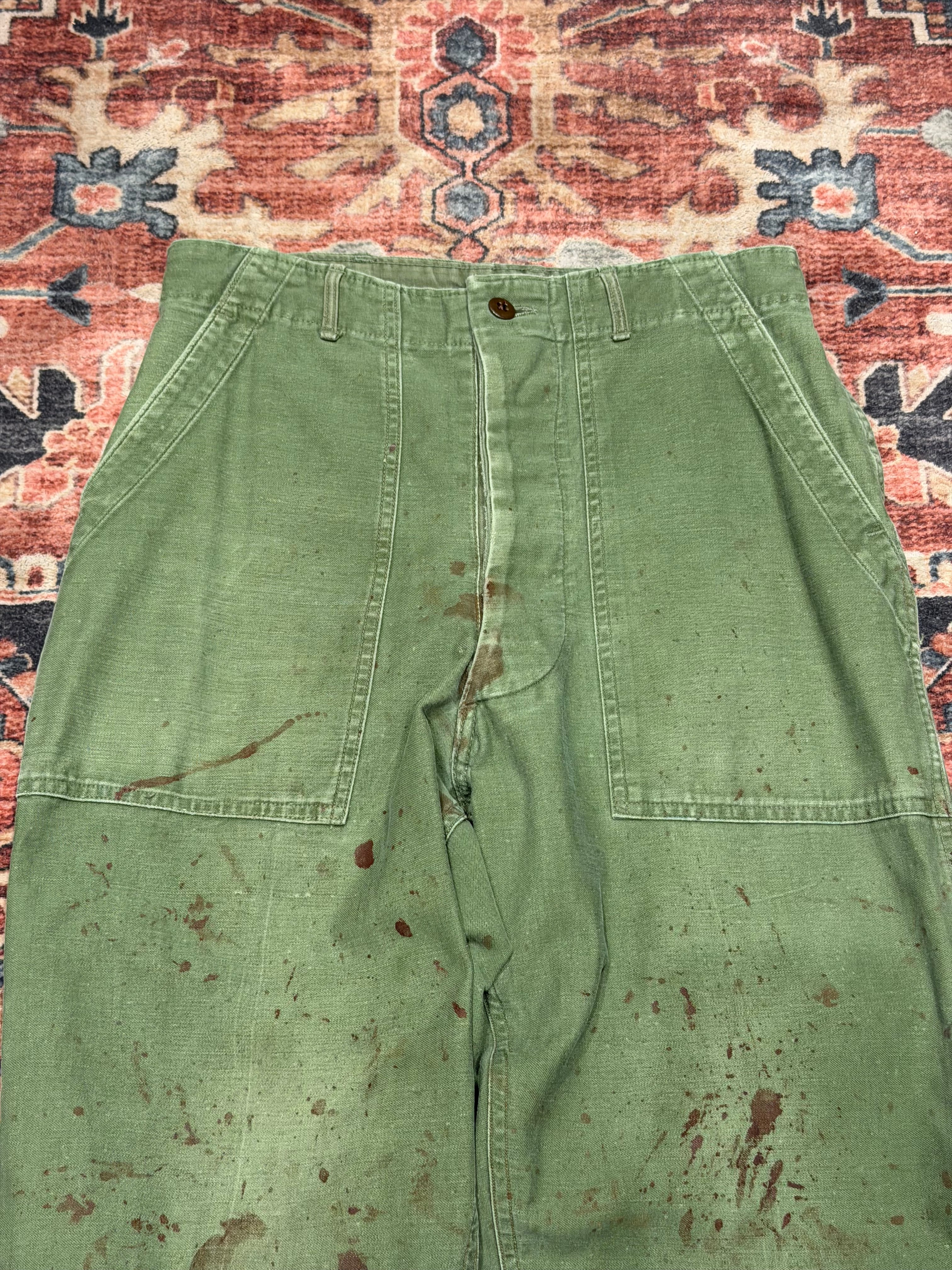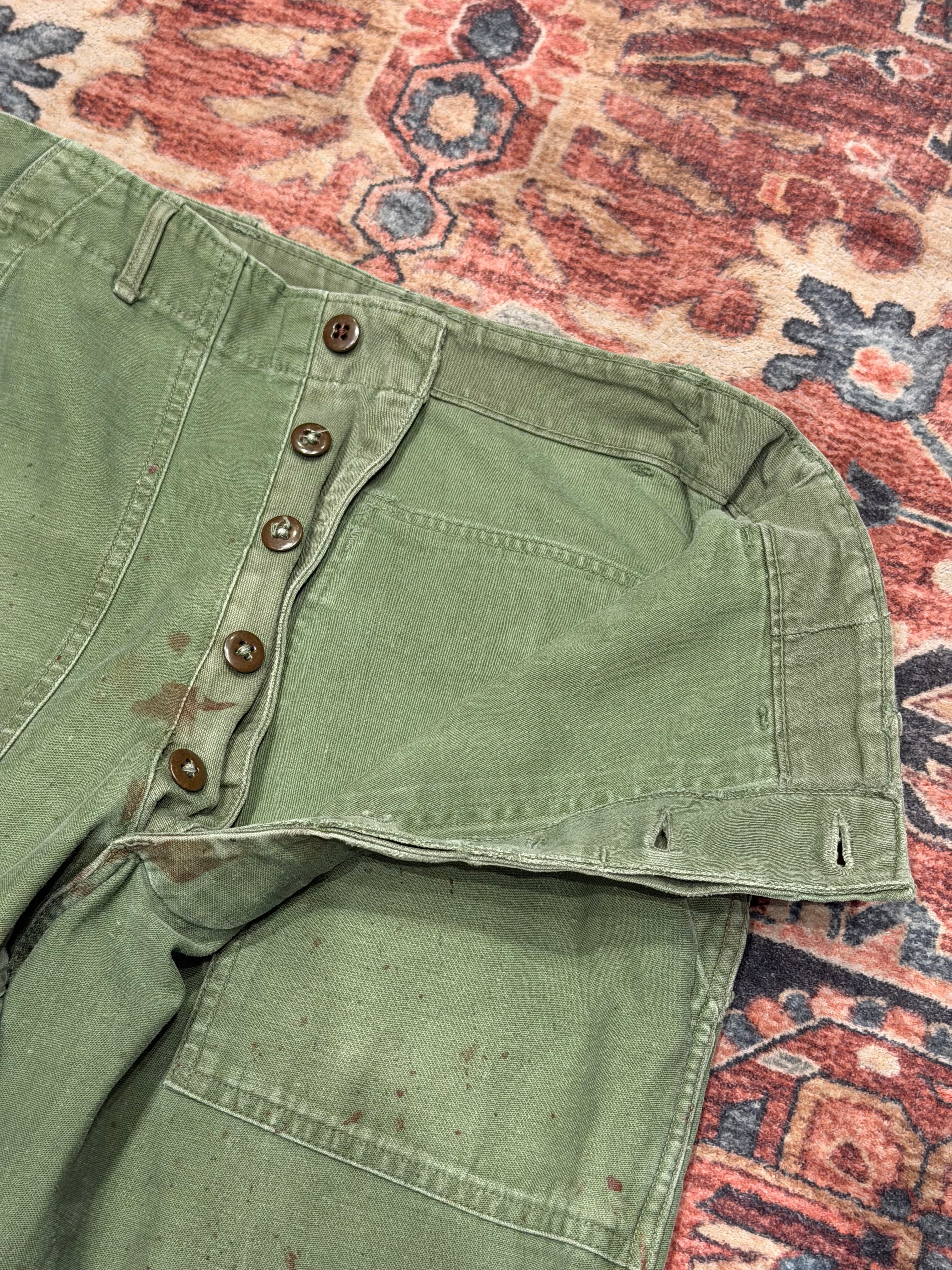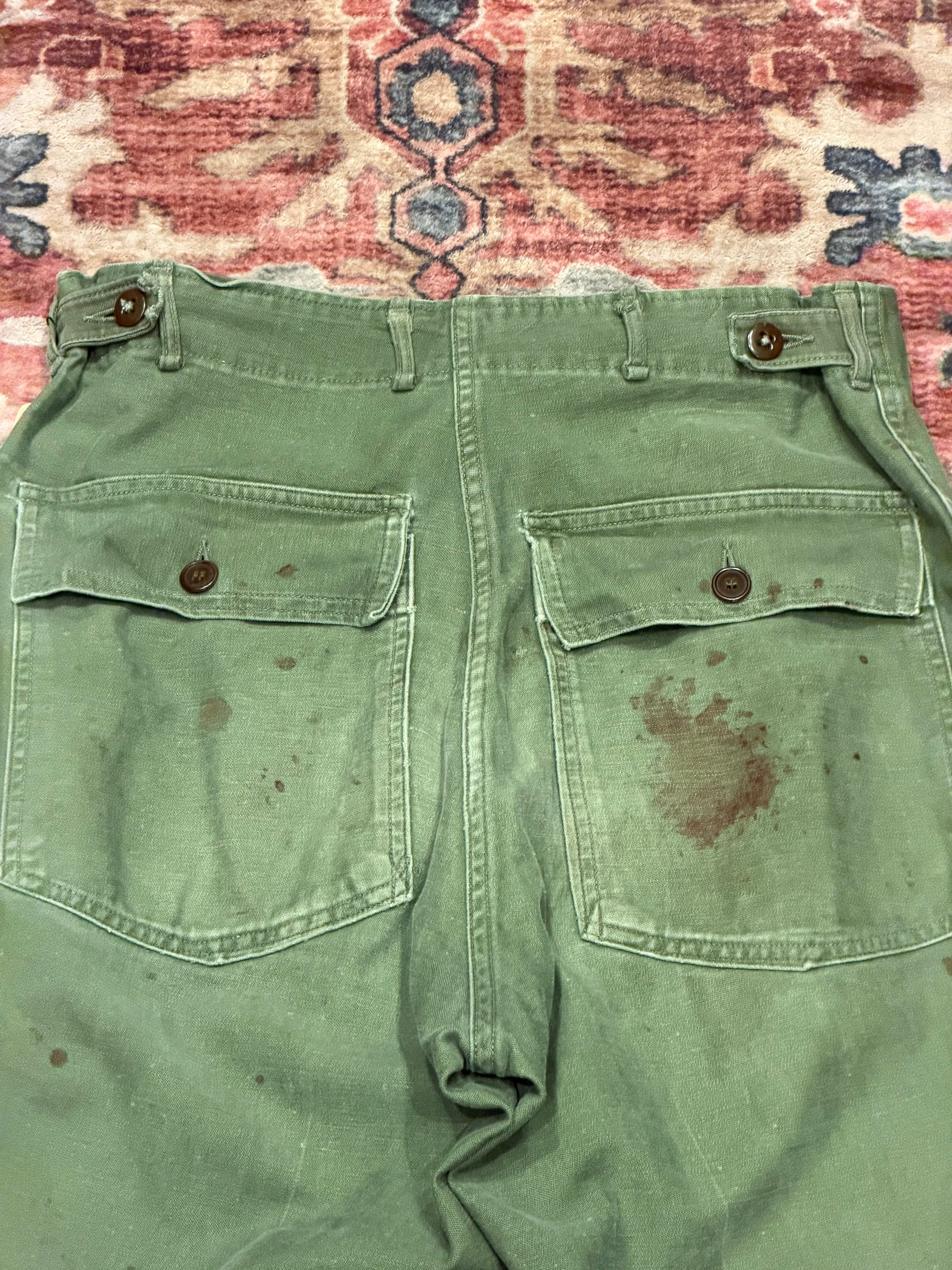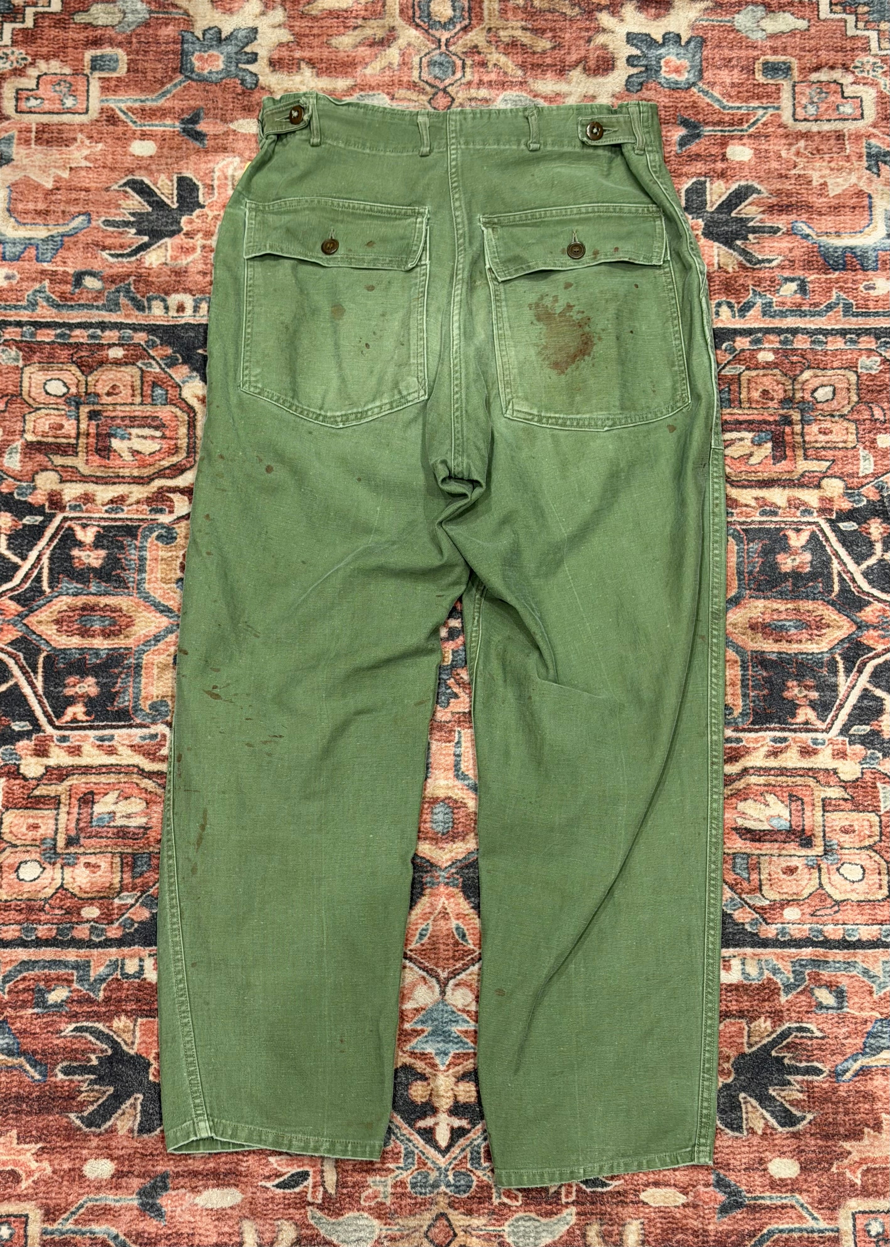 【 50年代 OG-107 ベイカーパンツ / US Army Utility Trousers 】 OG 107 U.S.ARMY 米軍 アメリカ郡 ベイカーパンツ ボタンフライ 尿素ボタン サイドアジャスター 《 W32 L29 》 | 古着屋DIGDIG