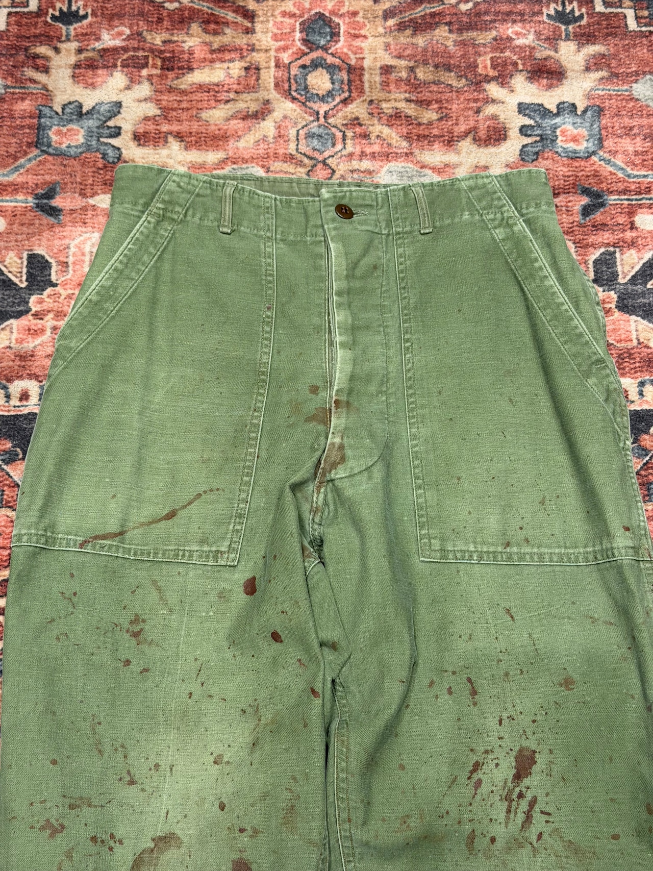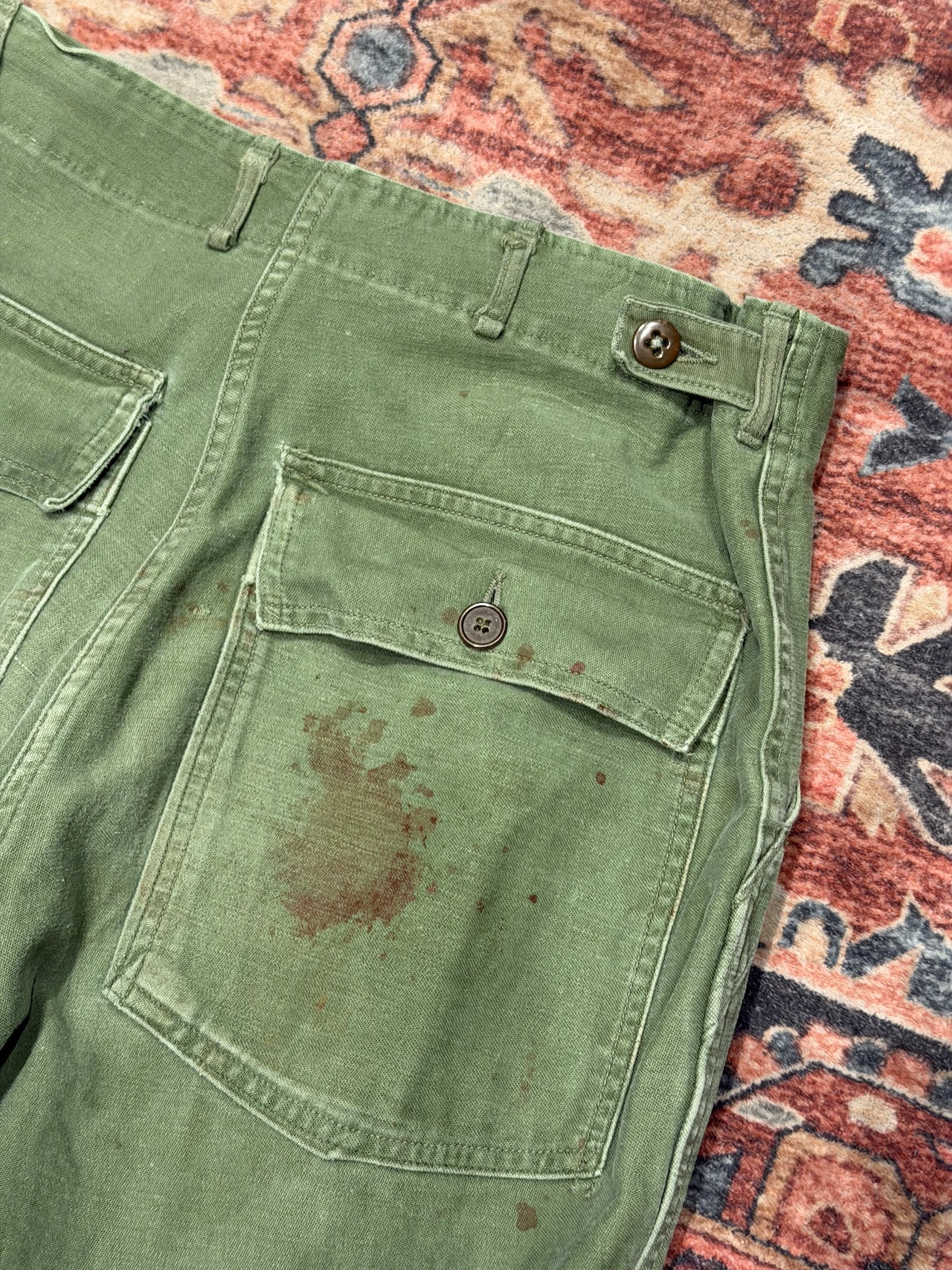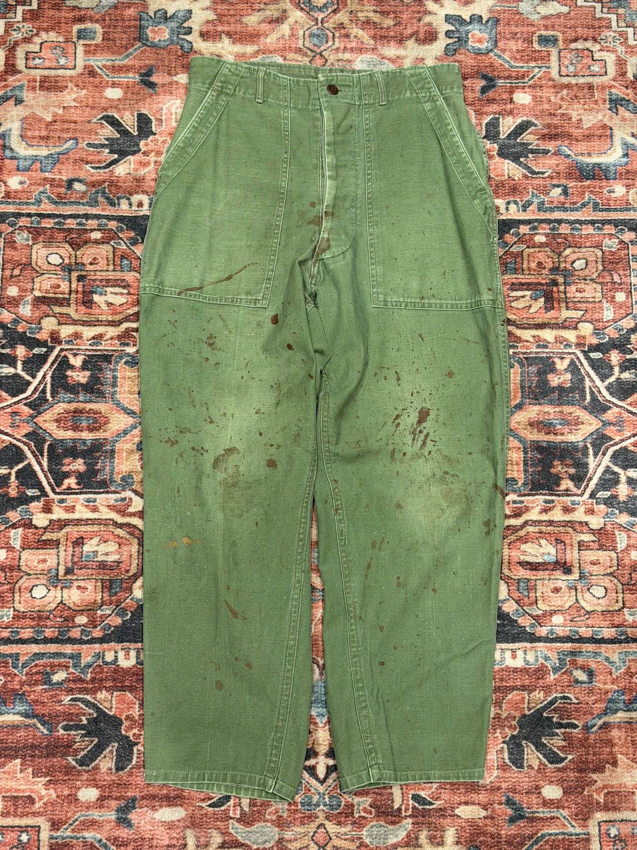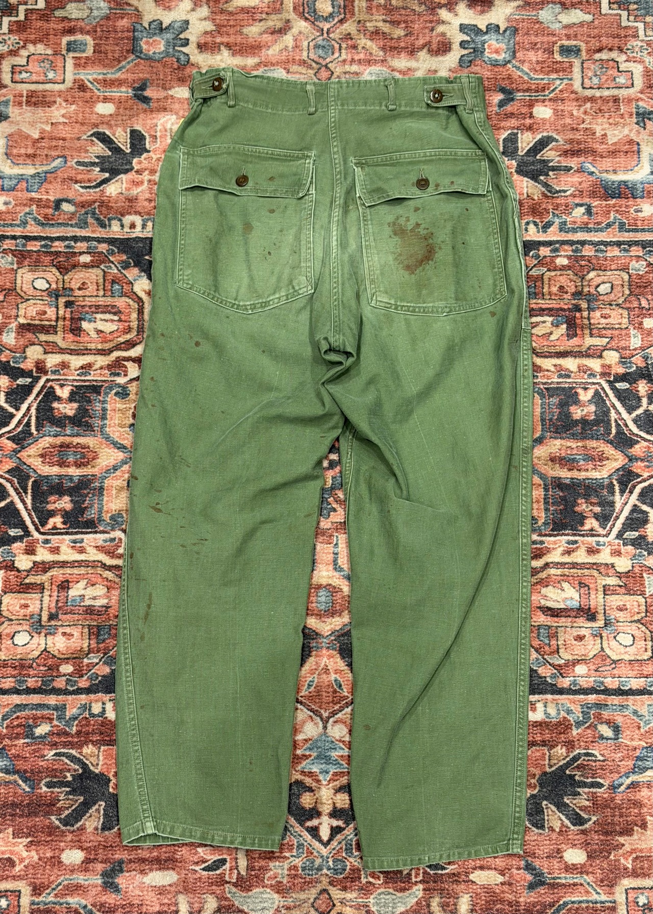 【 50年代 OG-107 ベイカーパンツ / US Army Utility Trousers 】 OG 107 U.S.ARMY 米軍 アメリカ郡 ベイカーパンツ ボタンフライ 尿素ボタン サイドアジャスター 《 W32 L29 》 | 古着屋DIGDIG