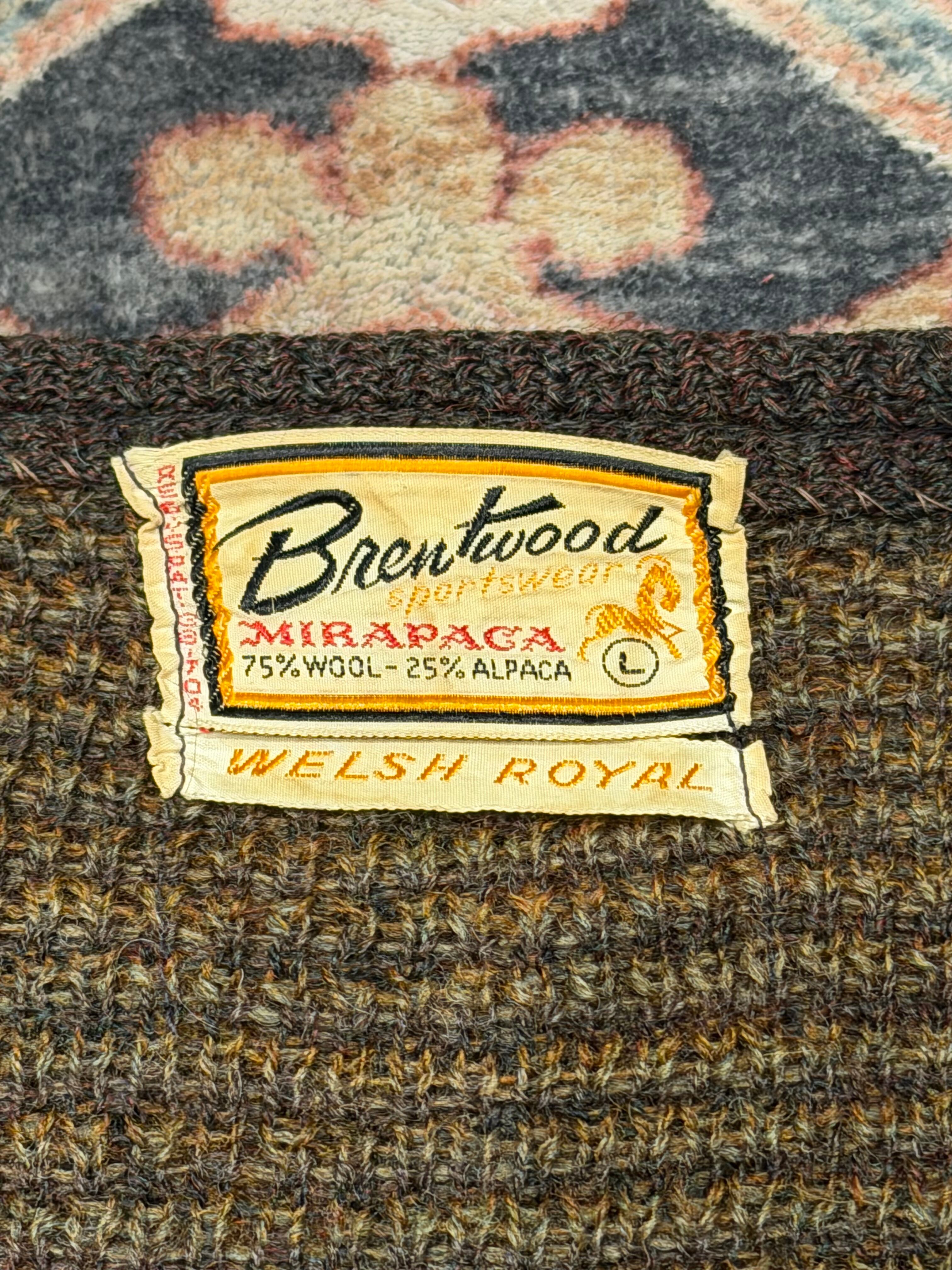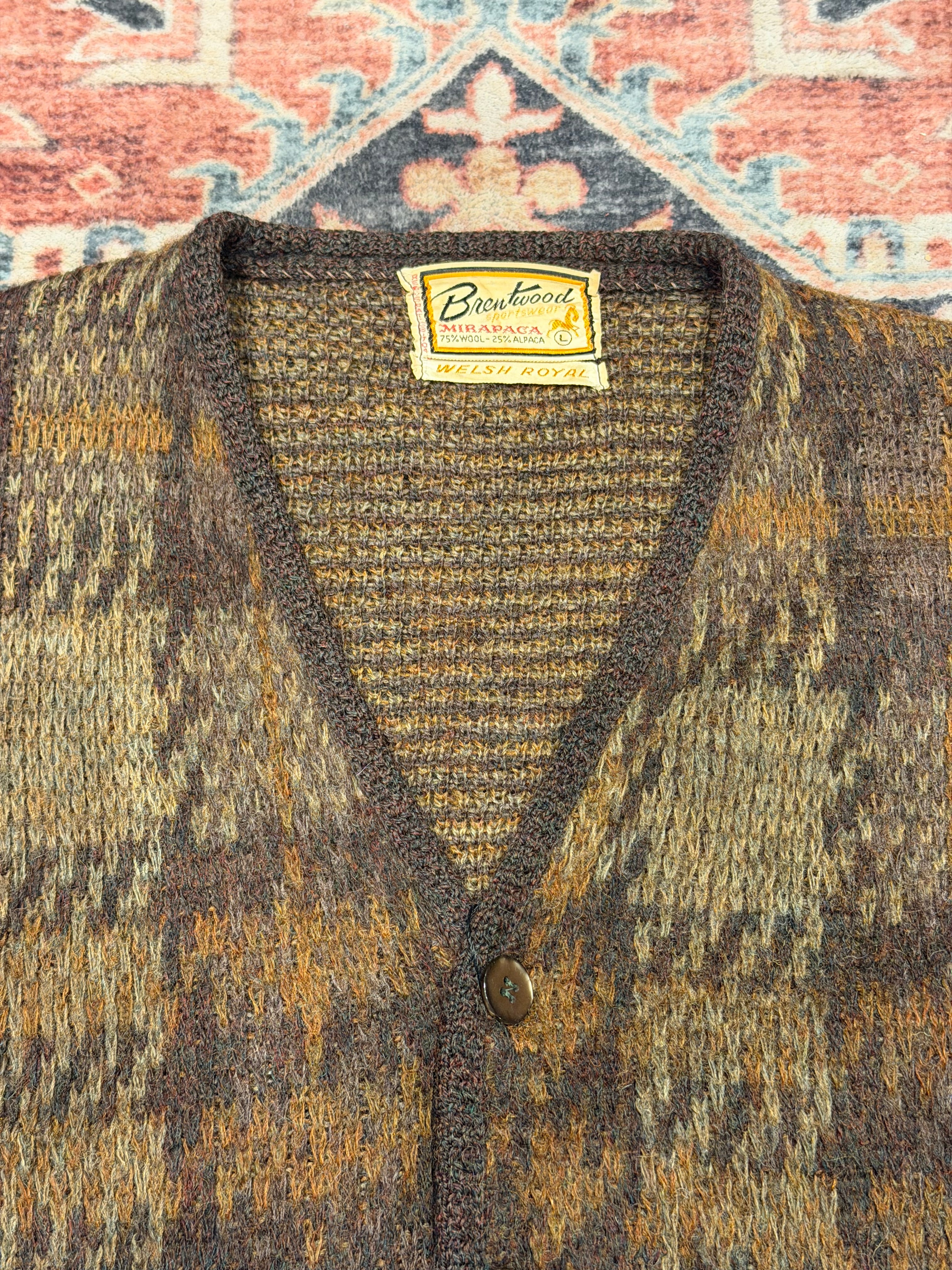 【 60年代 USA製 Brentwood Sportswear カーディガン 】 Cardigan 75%WOOL / 25%ALPACA ブラウン 60's 60s ( L )
