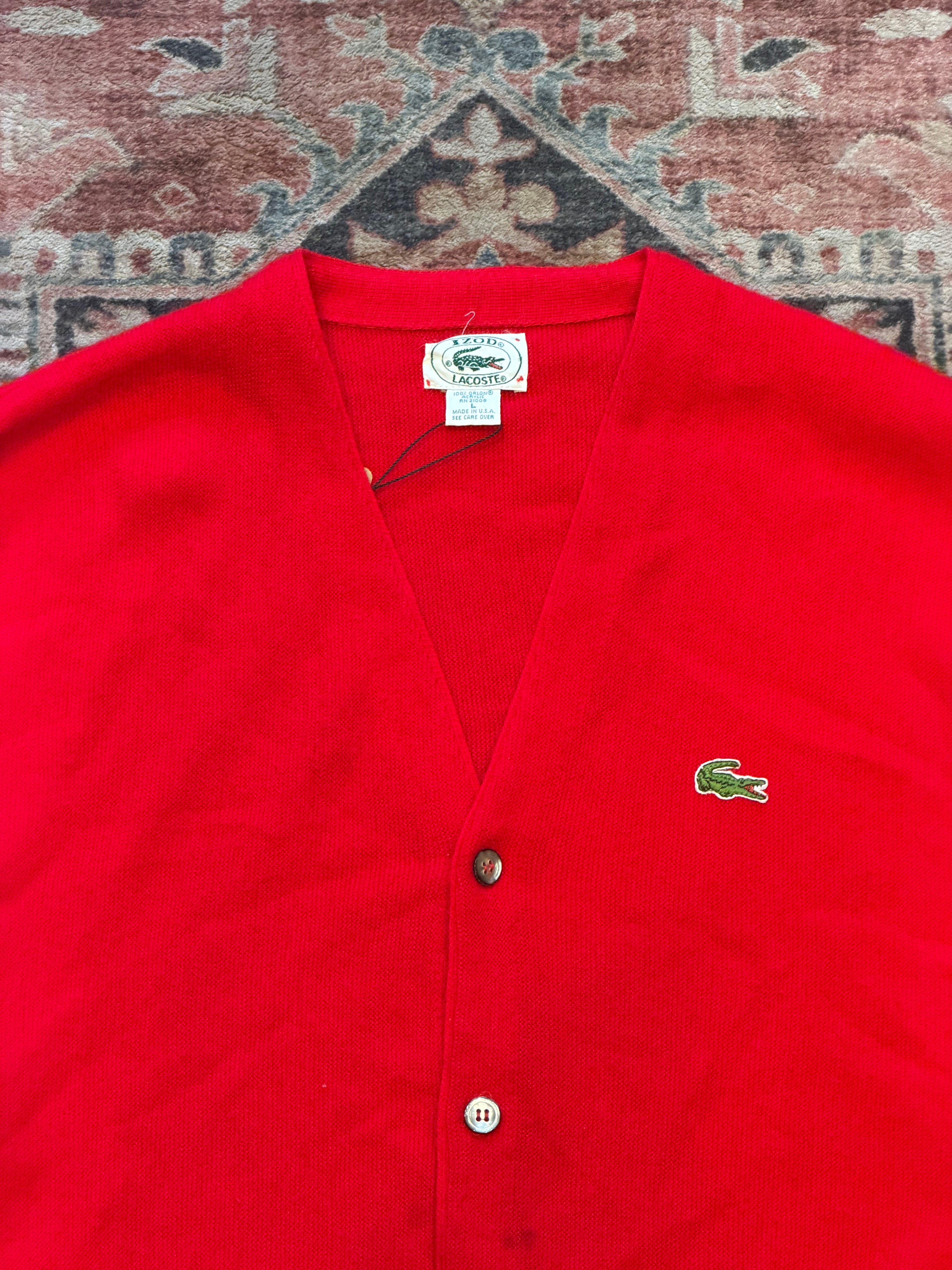 (詳細)ラコステ アクリルカーディガン 緑ワニ IZOD
