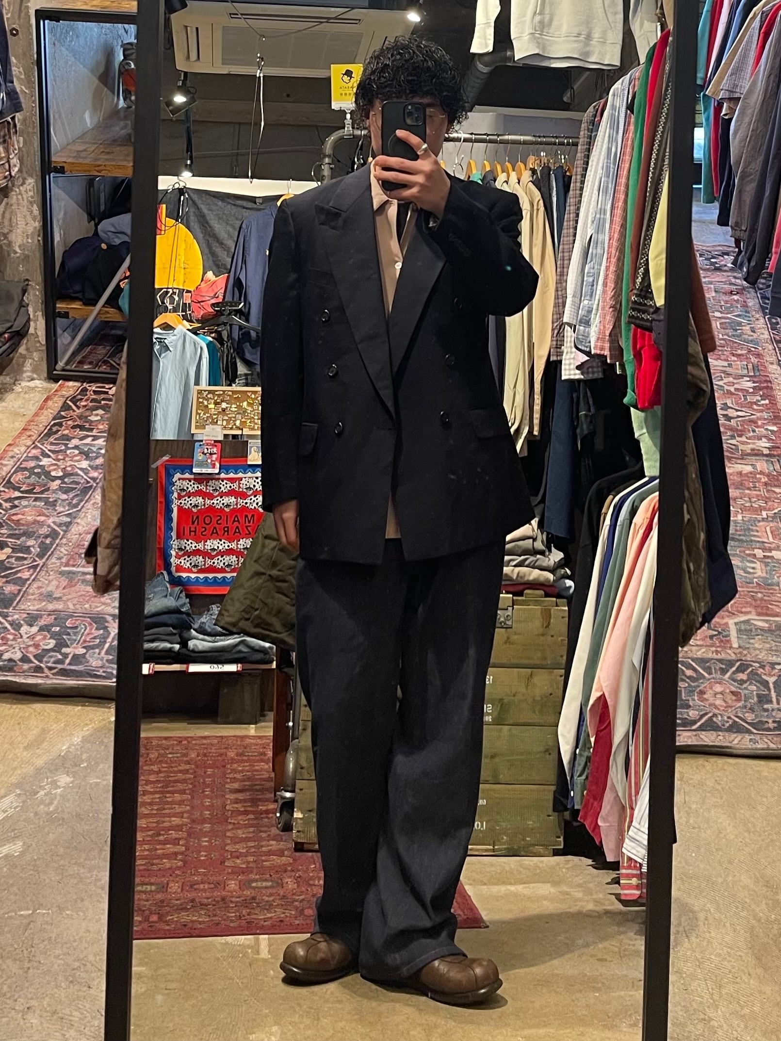 黒のように深いネイビーカラーにより、渋さと品のバランスが絶妙な1着。