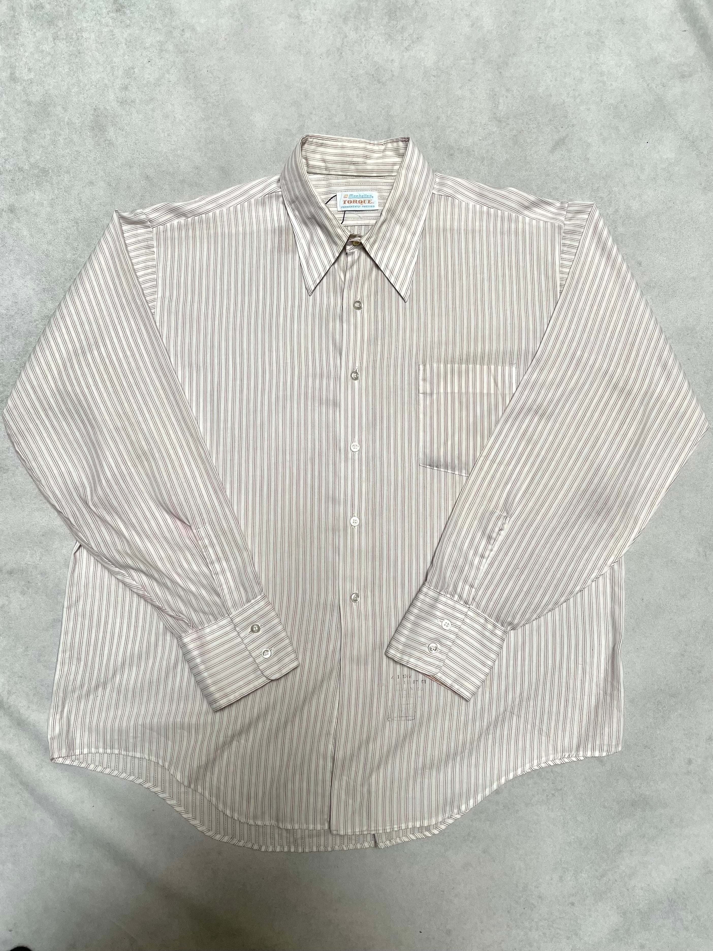 【Manhattan / TORQUE 】70's USA製 ストライプシャツ ホワイト×レッド