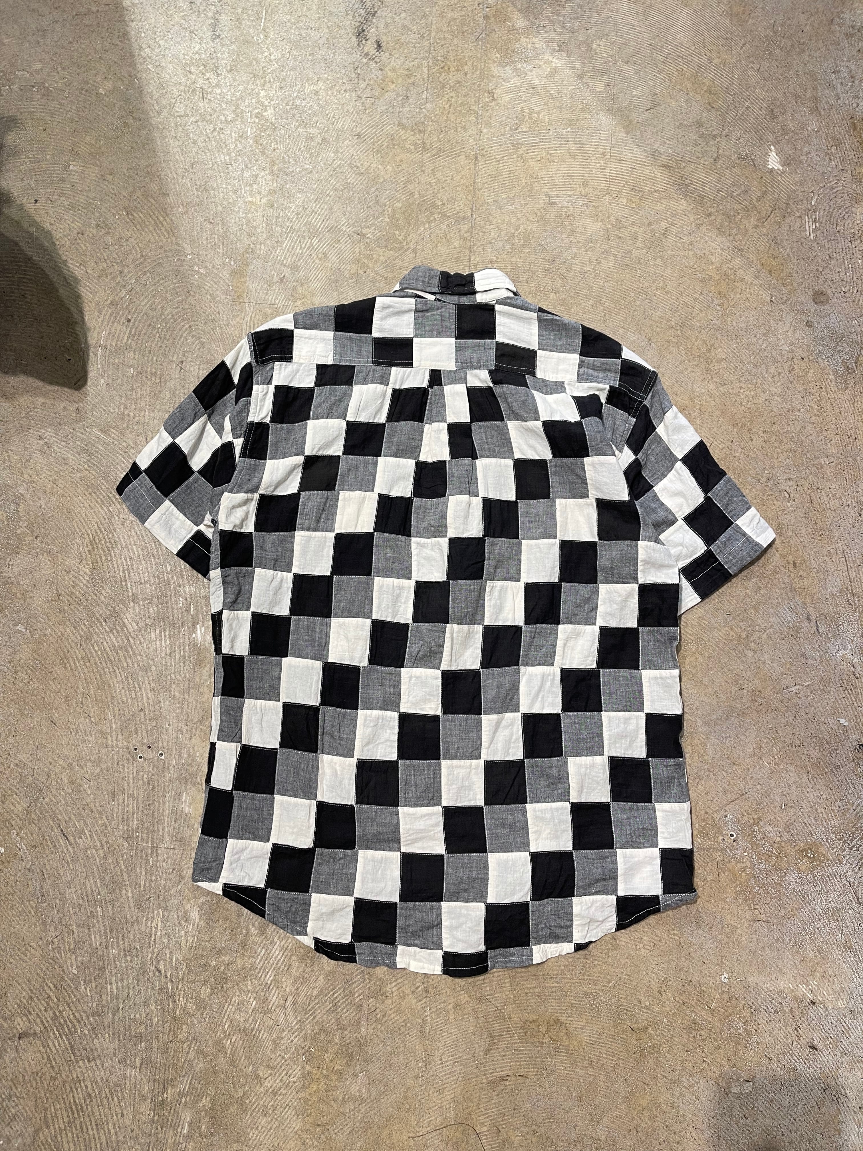 【 S/S patchwork shirt / Black & White 】パッチワーク半袖シャツ バッファローチェック Lサイズ