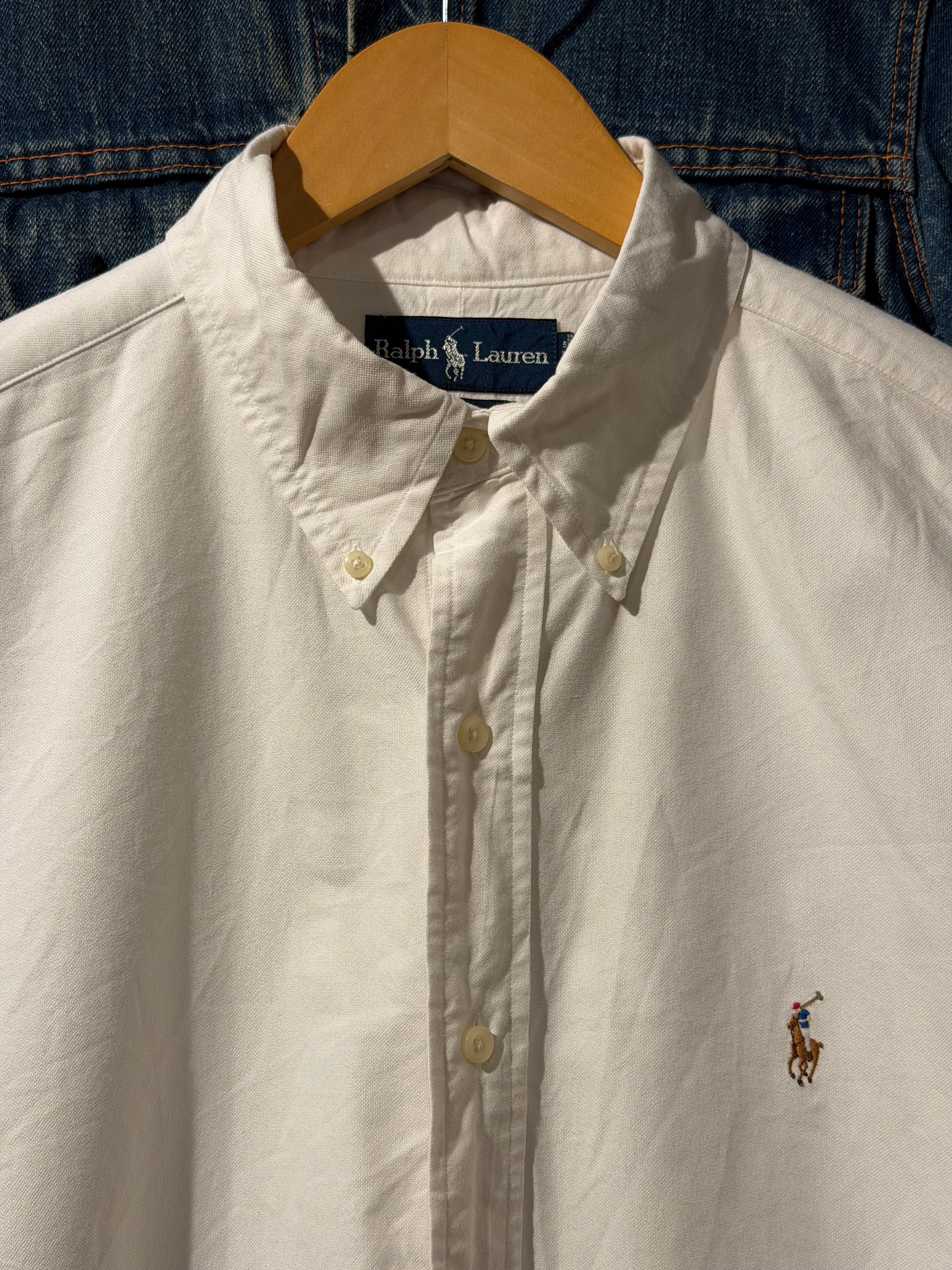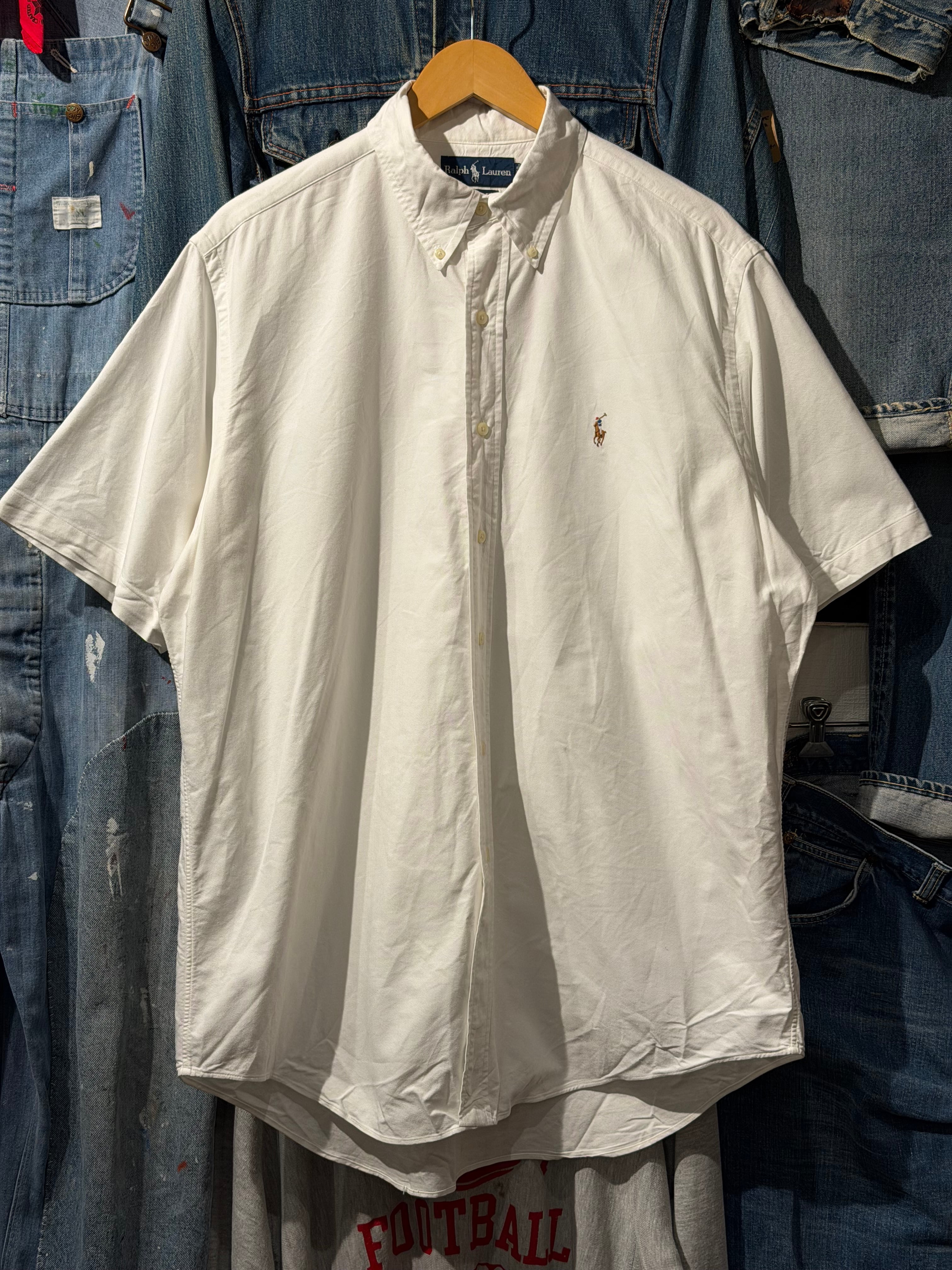 【 Ralph Lauren S/S Shirt 】 ラルフローレン 半袖 ボタンダウンシャツ オックスフォードシャツ CLASSIC FIT 無地 ポニー 白 ホワイト 《 L 》