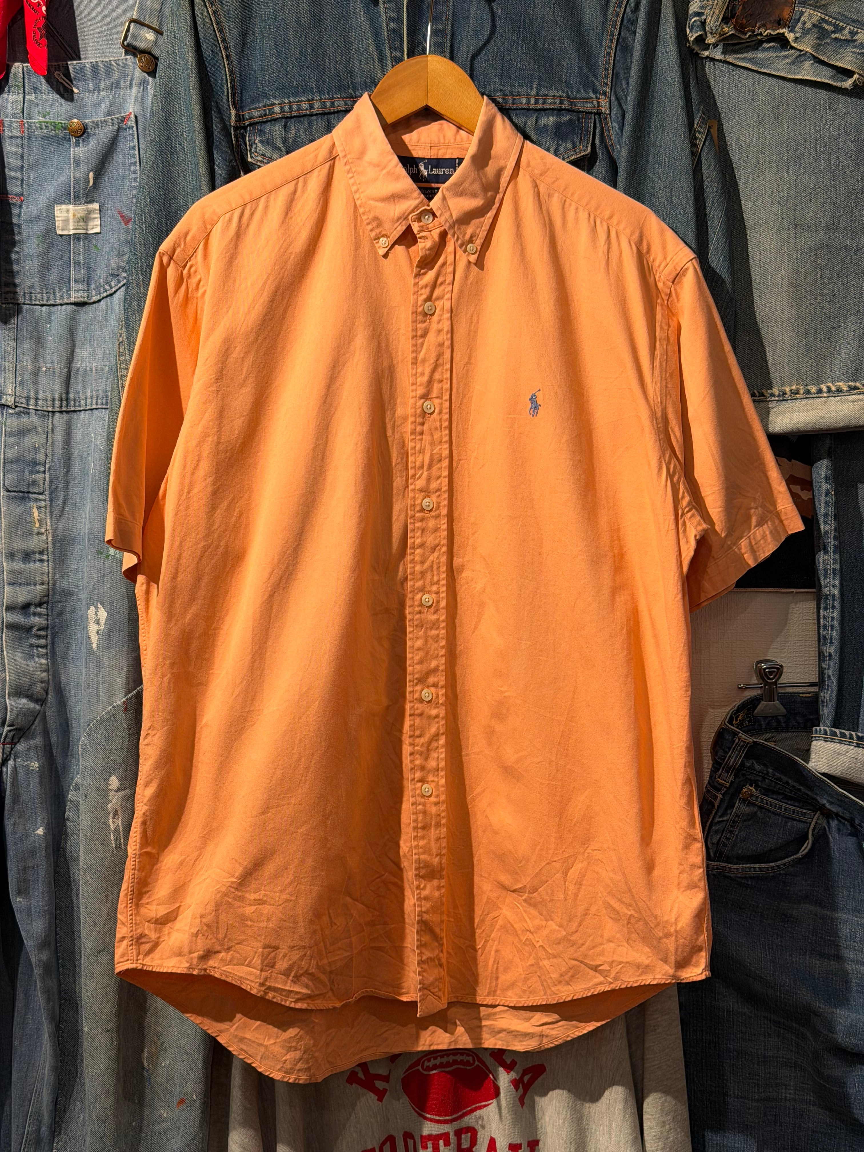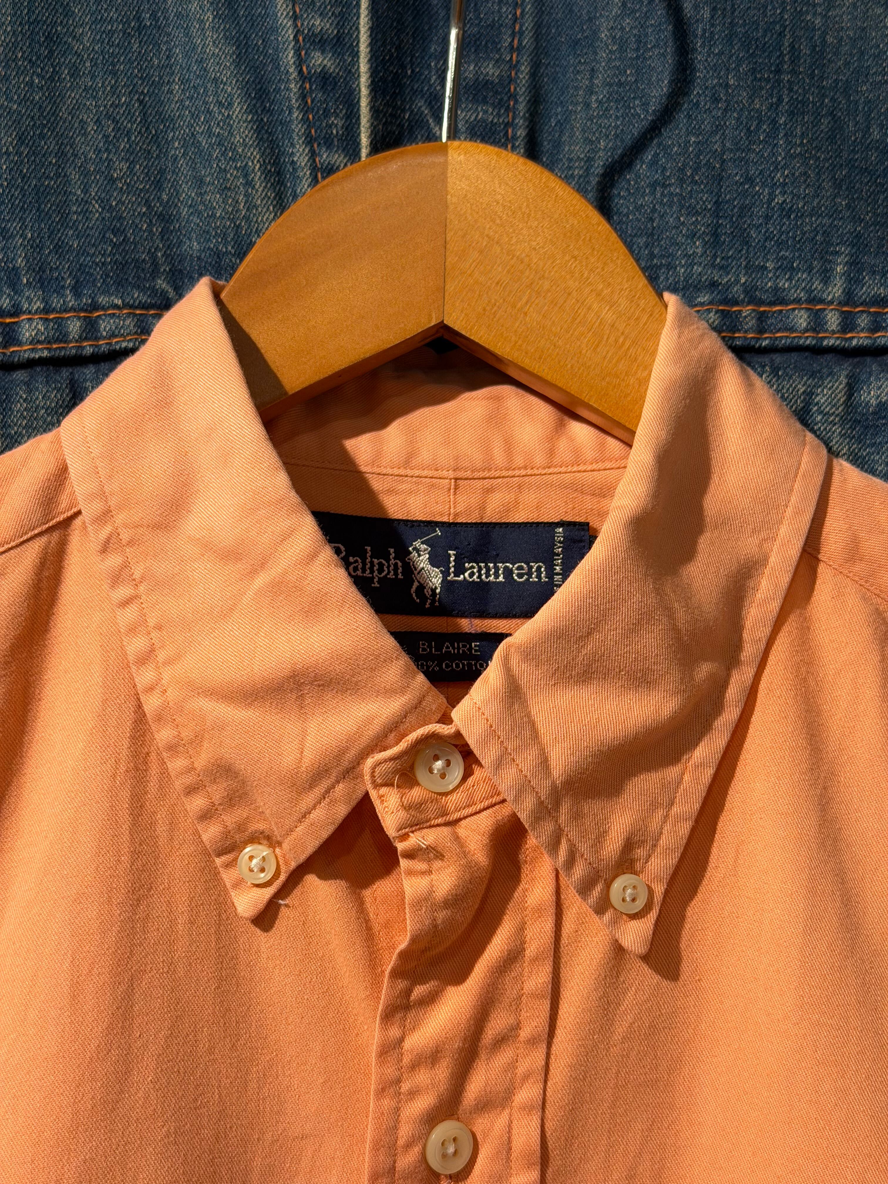 【 90s Ralph Lauren S/S Shirt 】 ラルフローレン 半袖 ボタンダウンシャツ BLAIRE 無地 ポニー 杏色 《 M 》