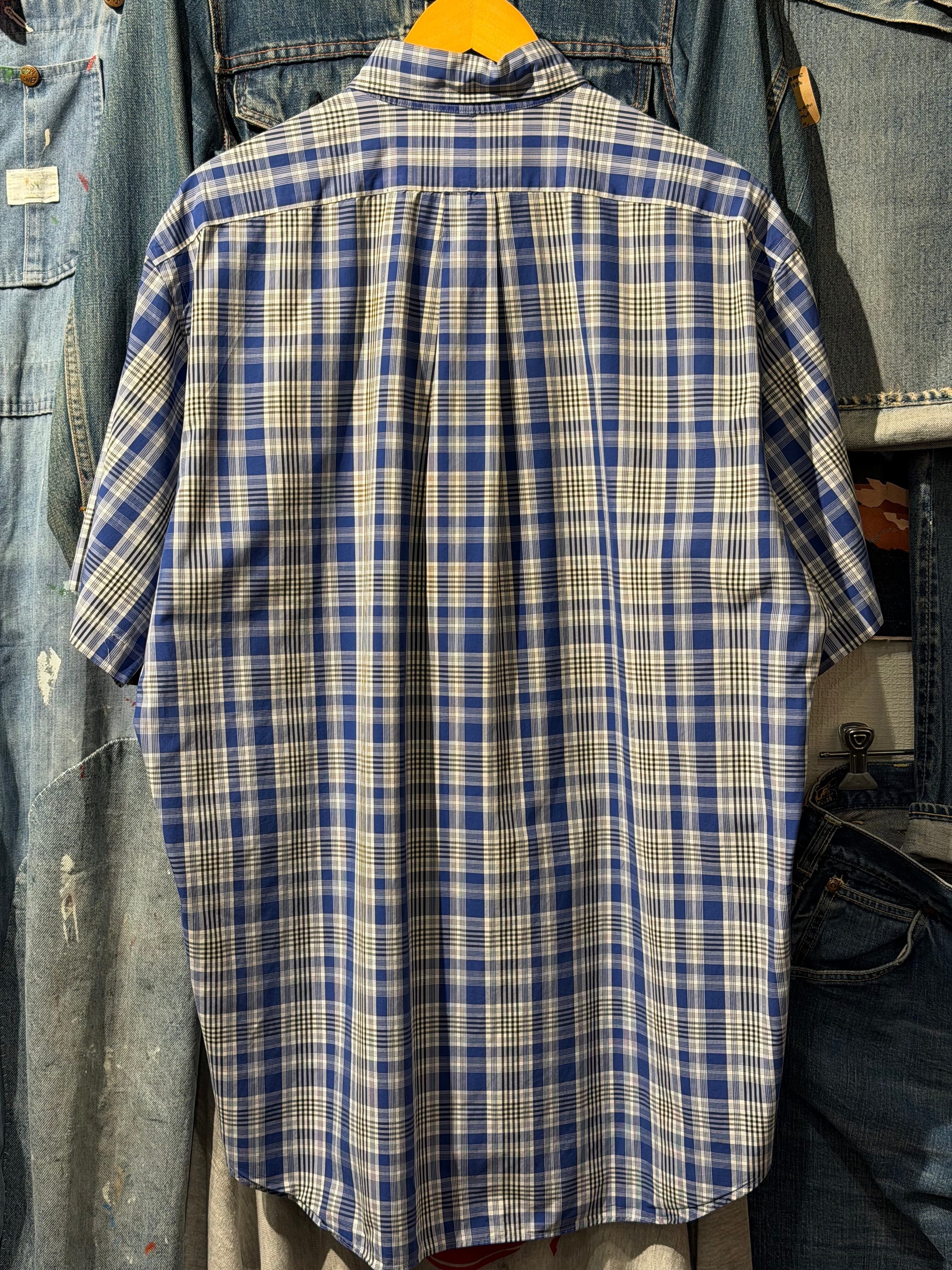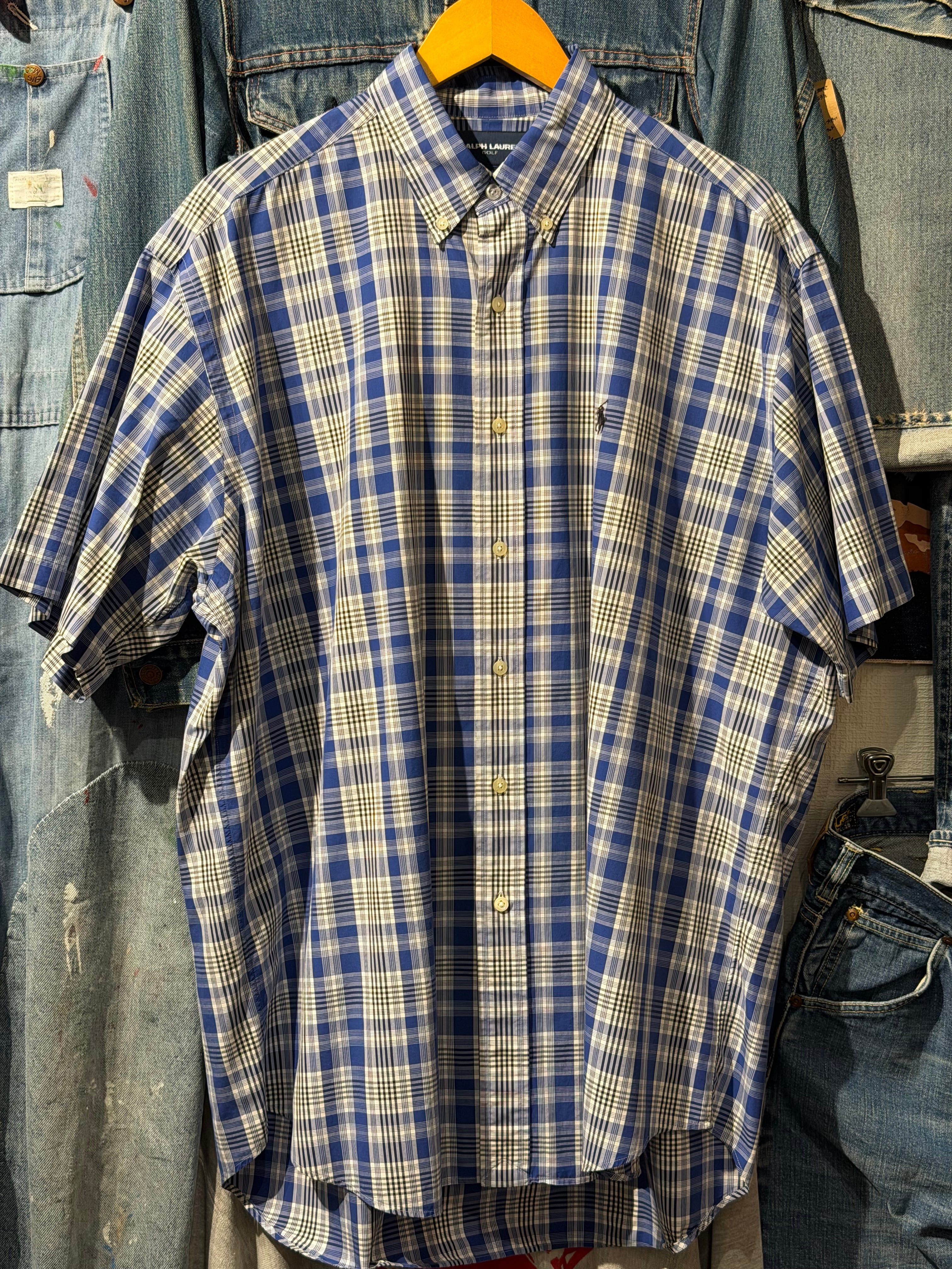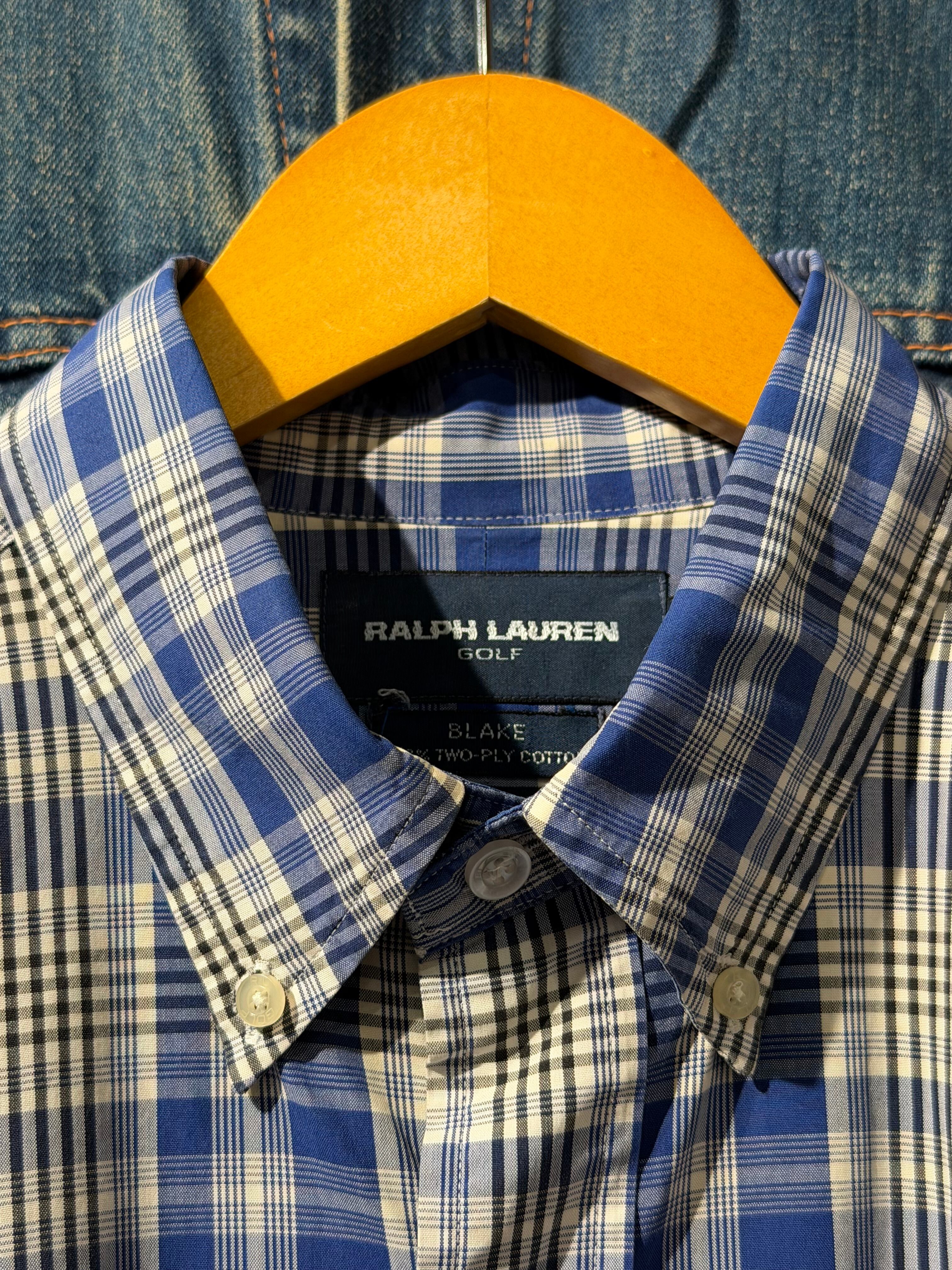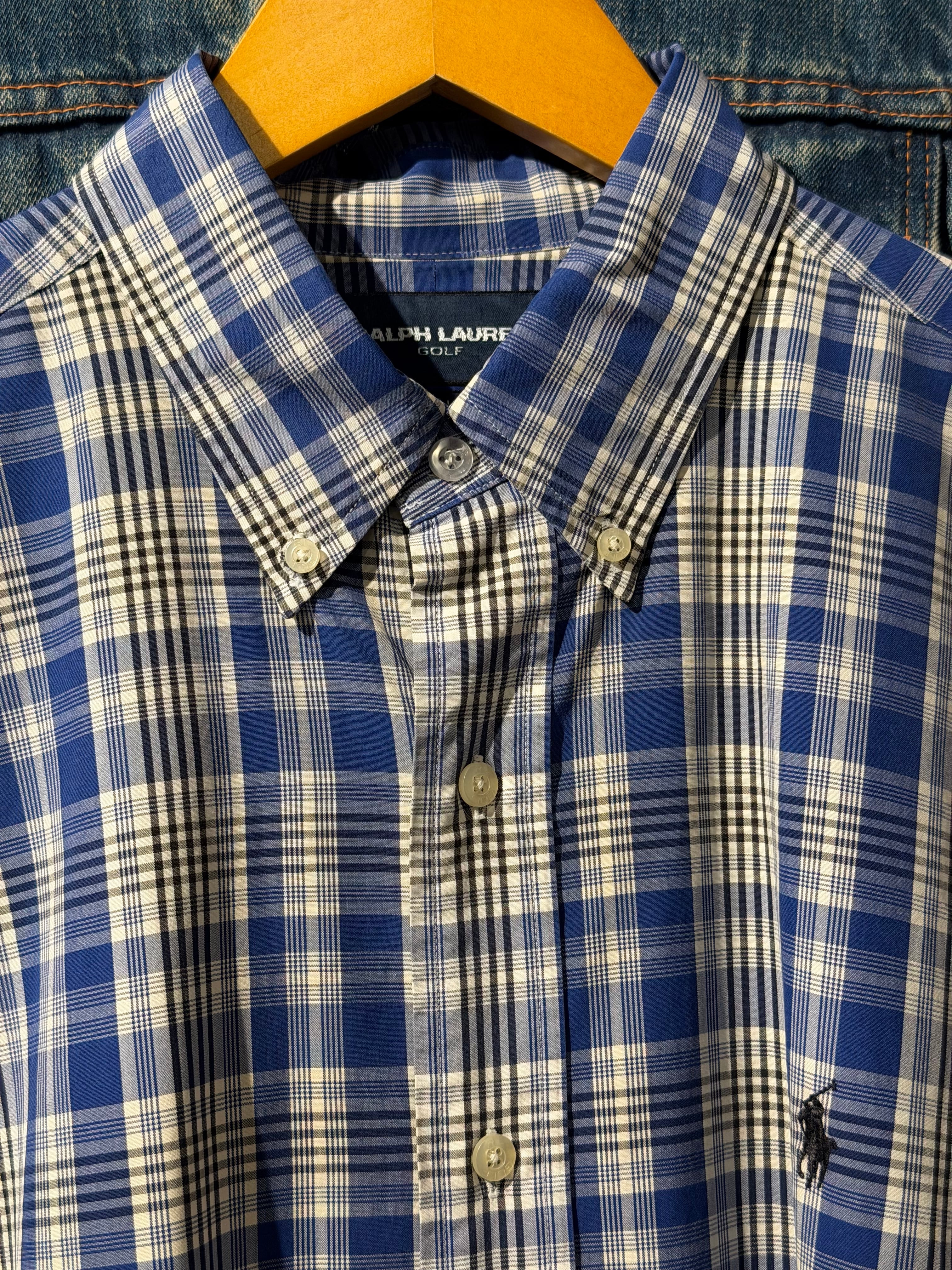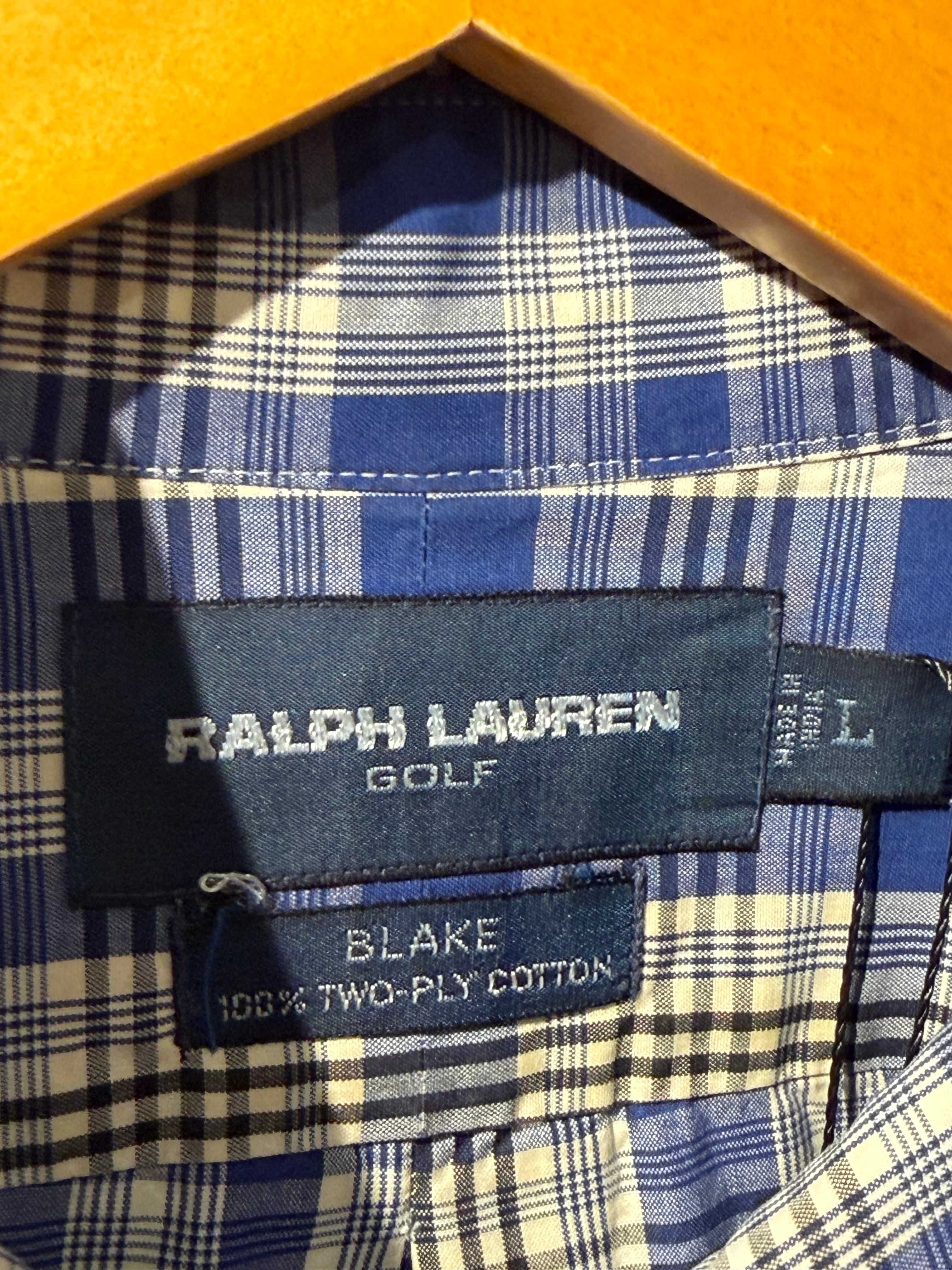 【 80s - 90s RALPH LAUREN GOLF S/S Shirt 】 ラルフローレン ゴルフ 半袖 ボタンダウンシャツ BLAKE TWO-PLY COTTON チェック柄 ポニー 《 L 》