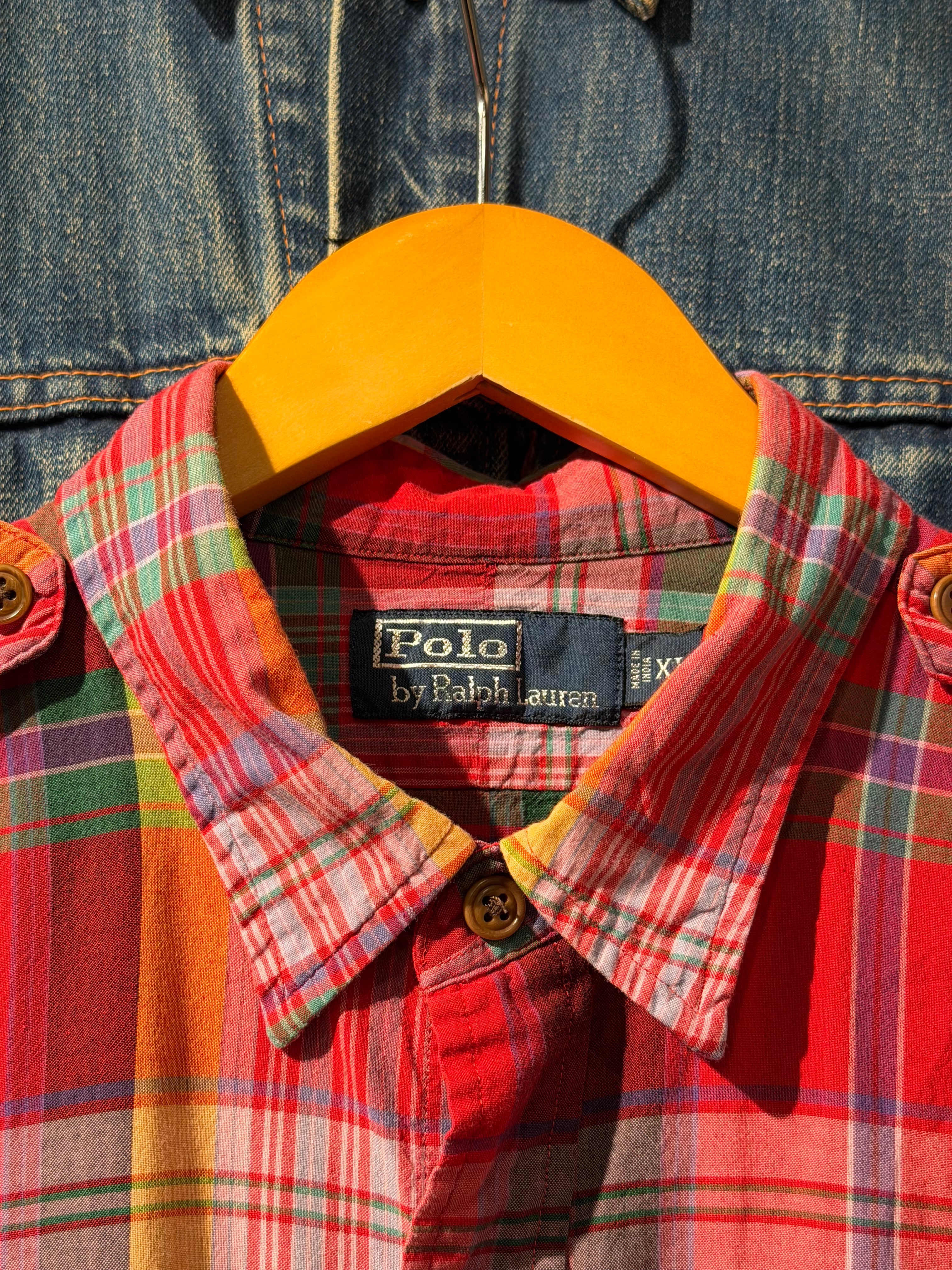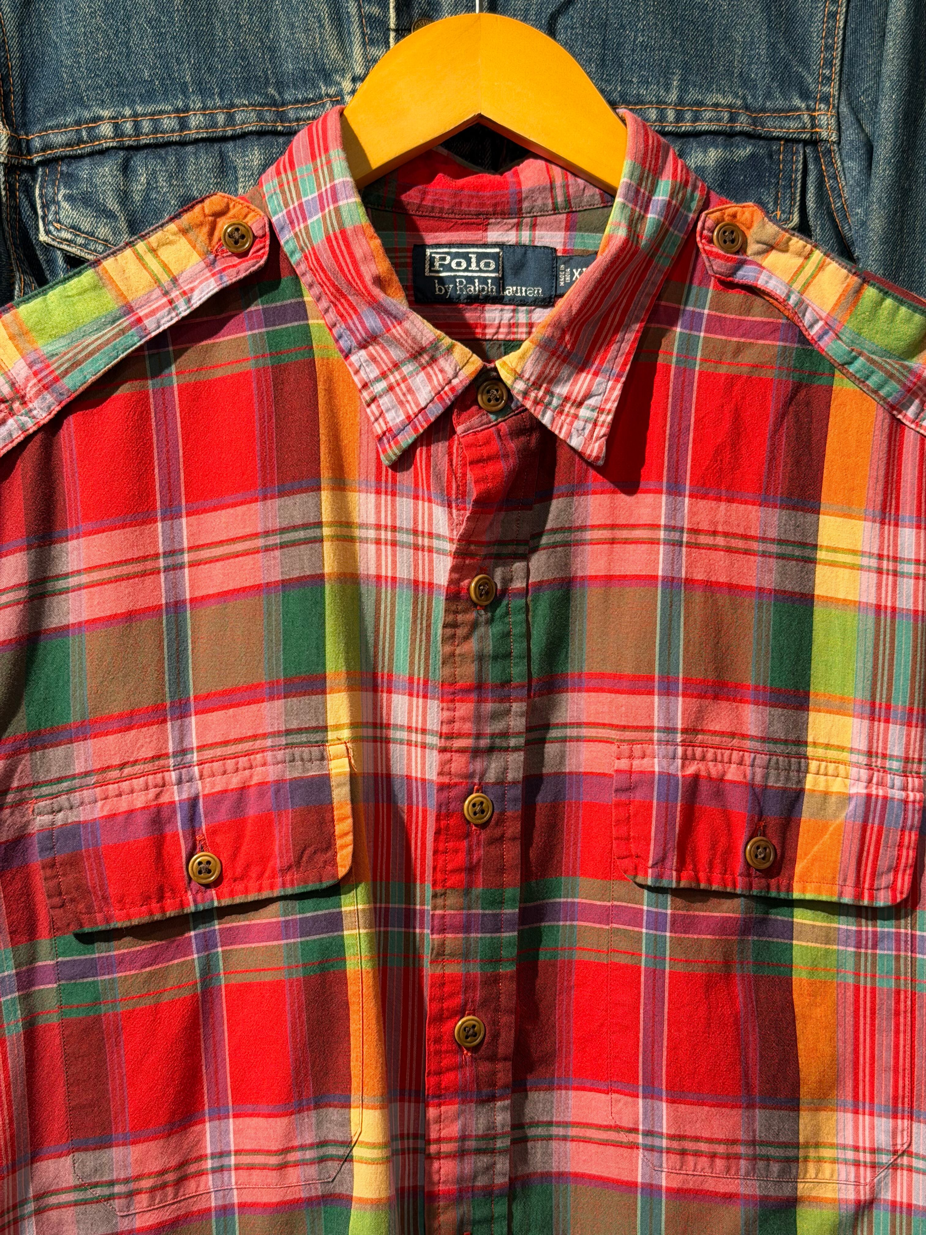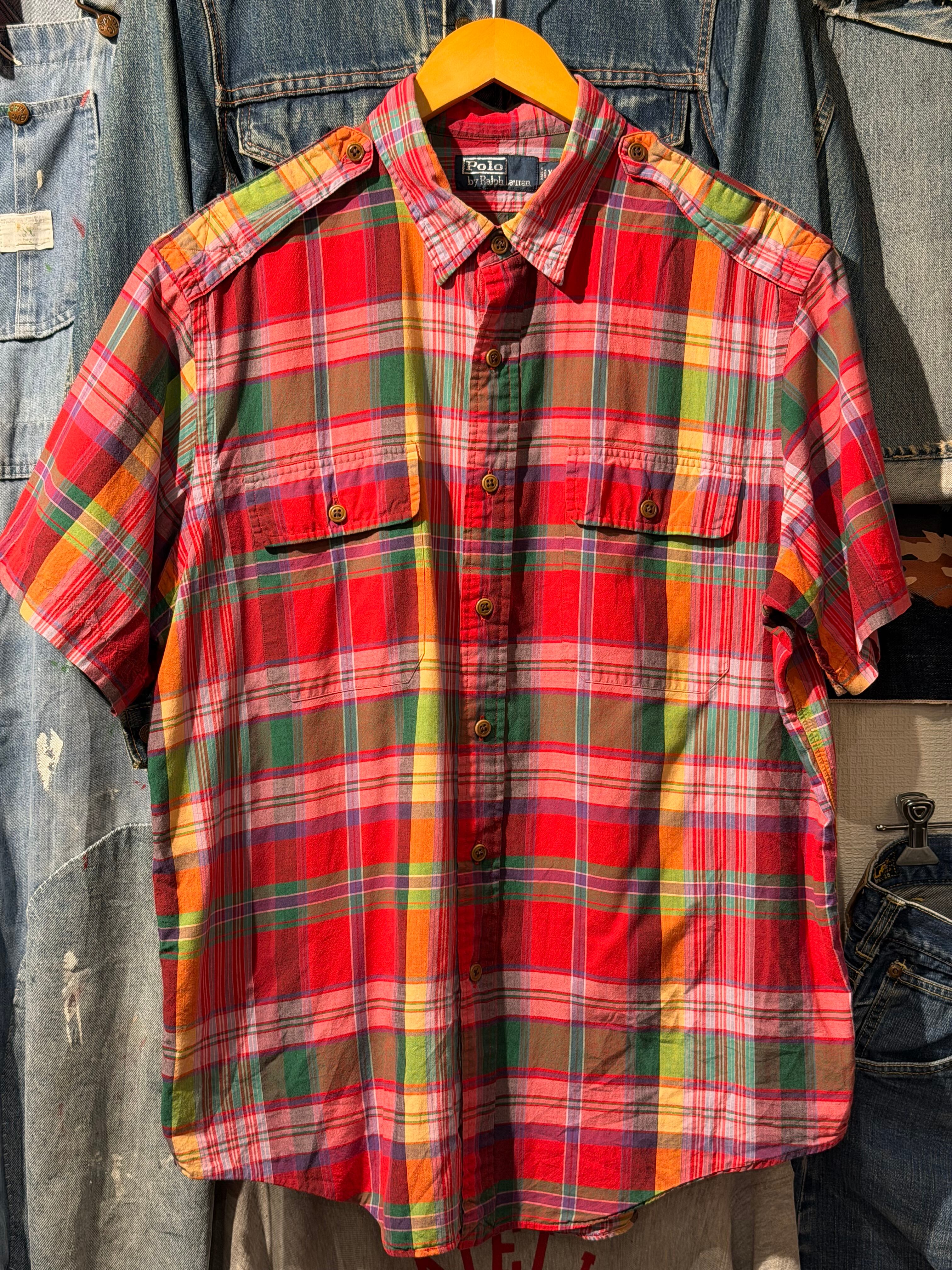 【 Polo by Ralph Lauren S/S Shirt 】 ポロ ラルフローレン 半袖 レギュラーカラー チェック柄 エポレット ポニー無し 2ポケット 《 XL 》