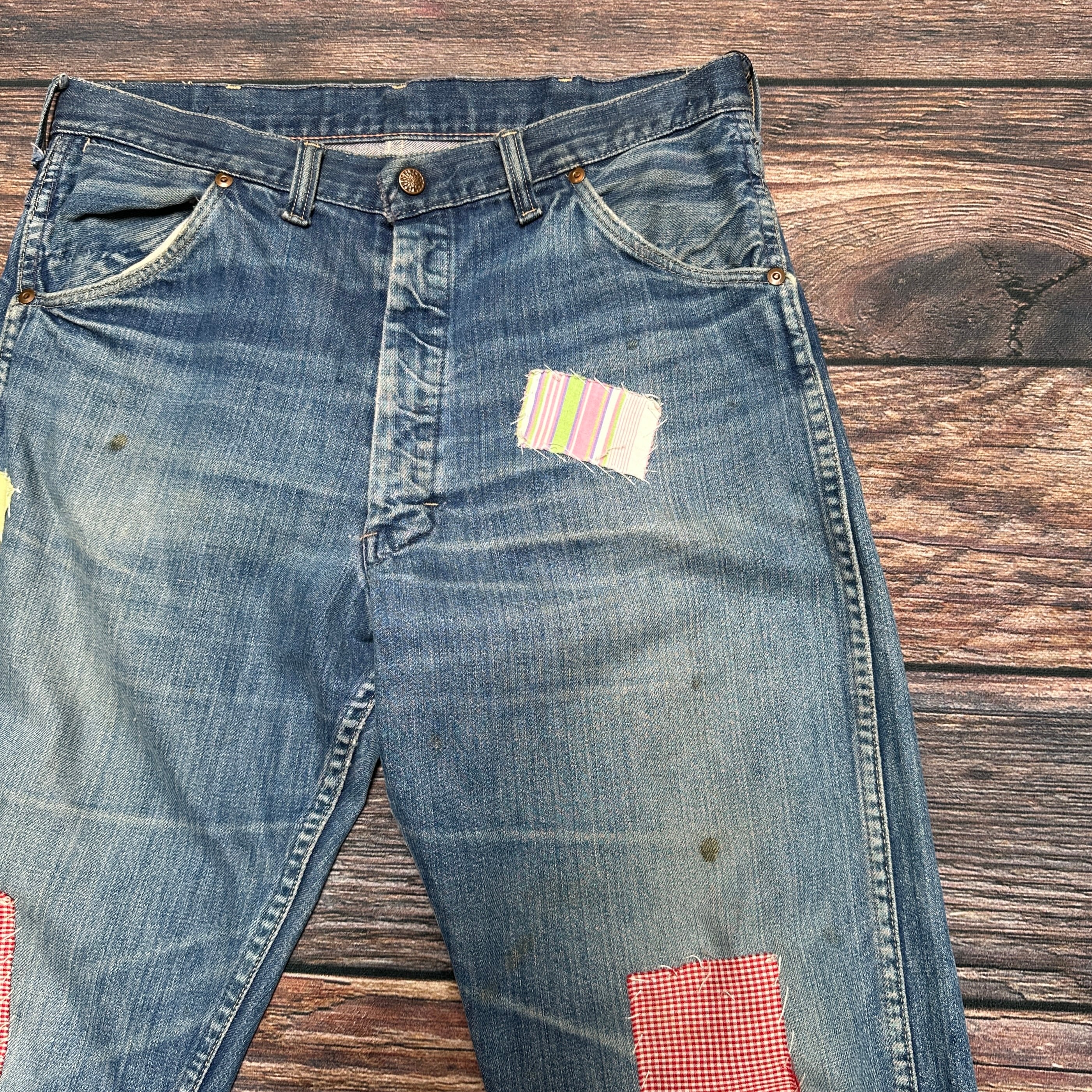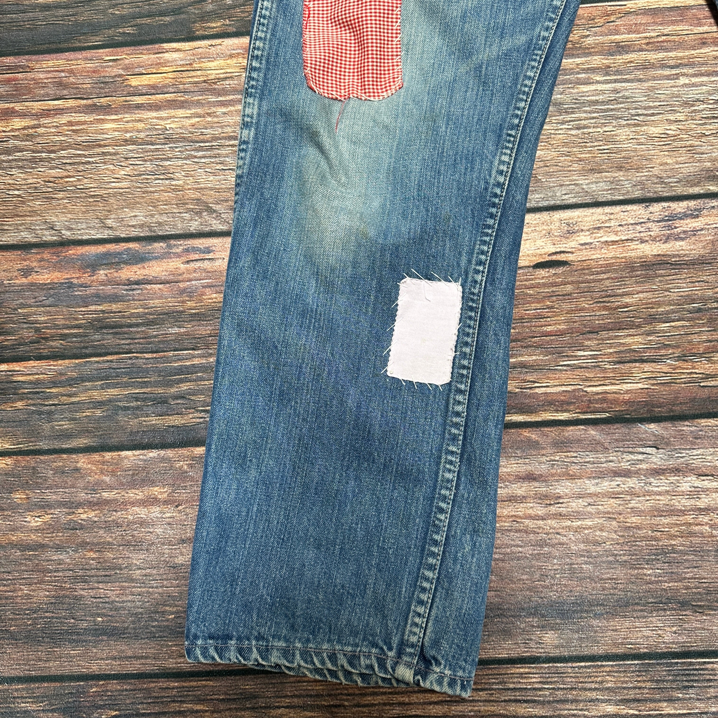 パッチワークデニムパンツ リメイク ヒッピー グランジ W32 L30