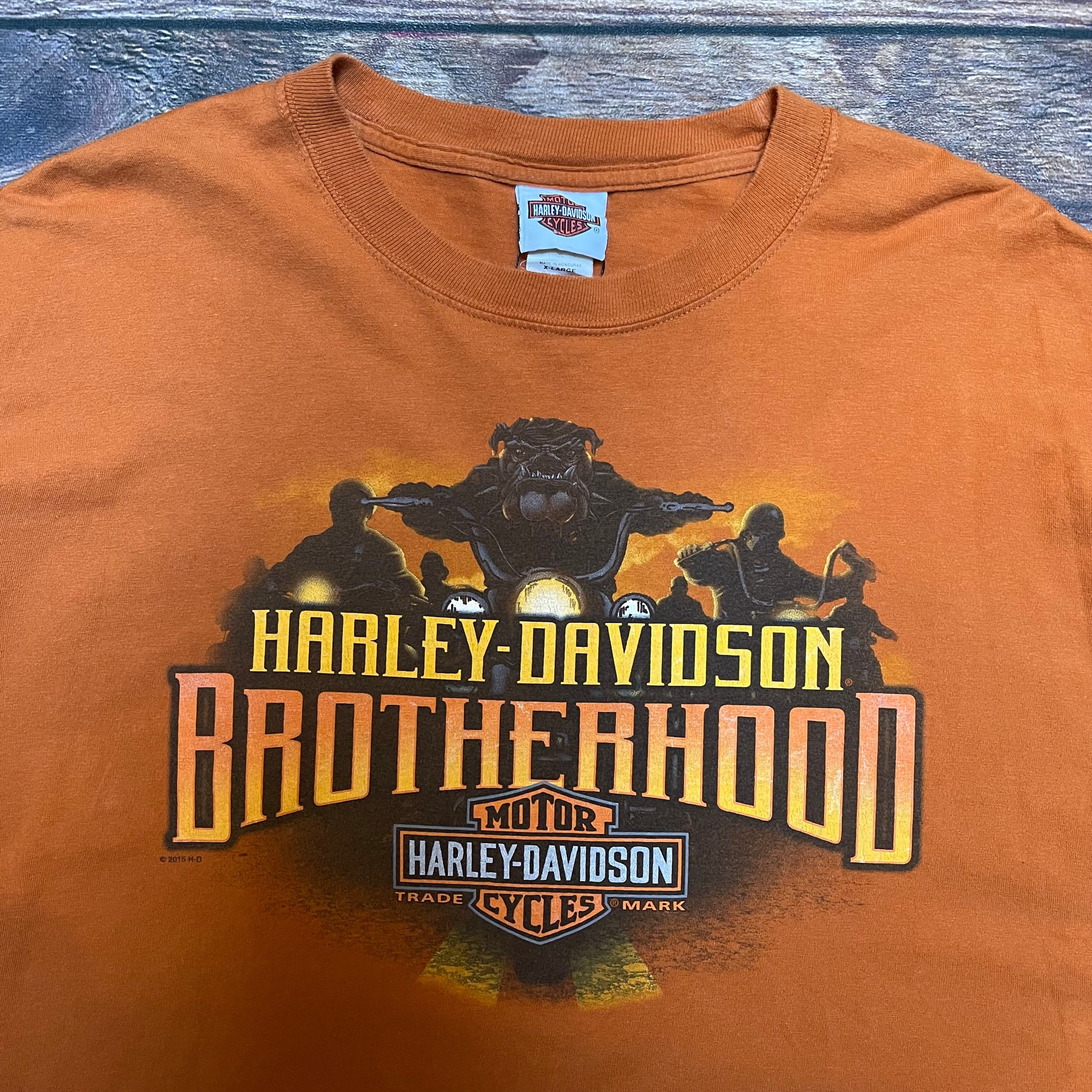 ハーレーダビッドソン 半袖Tシャツ オレンジ XLサイズ 両面プリント
