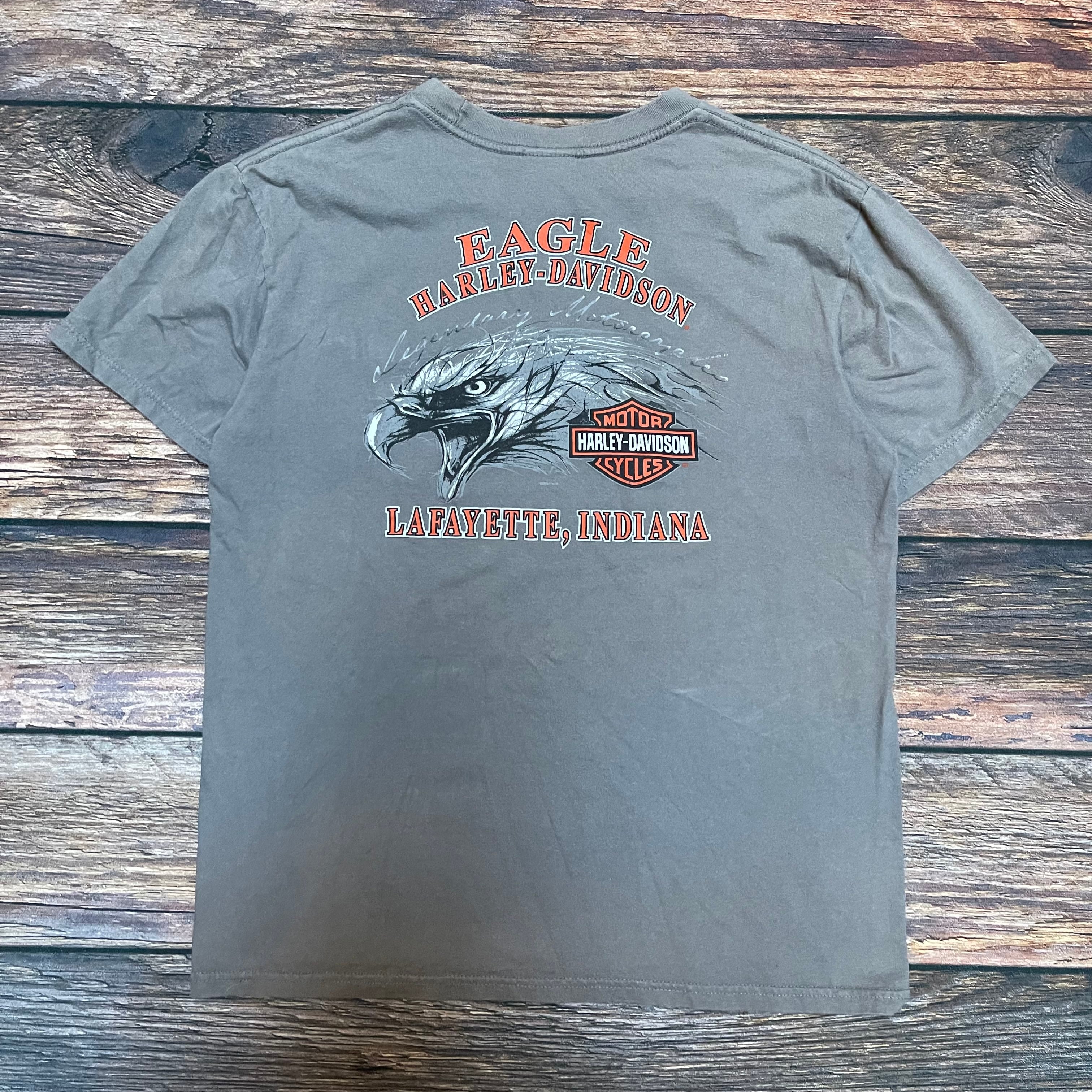 ハーレーダビッドソン 半袖ポケットTシャツ グレー Mサイズ 両面プリント